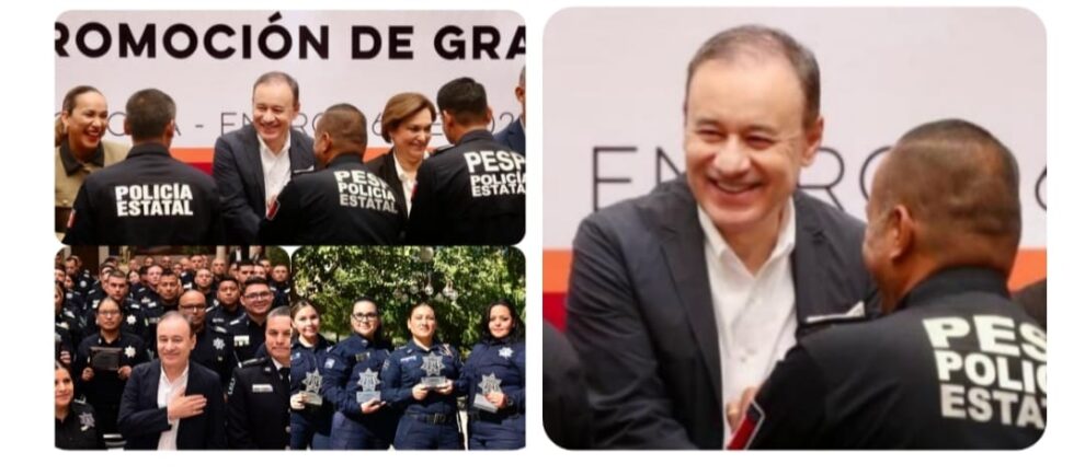 En el marco de la celebración de la ceremonia del Día del Policía y segunda premiación de grado, el mandatario sonorense reconoció la labor de las y los agentes de la PESP, donde otorgó también distintivos por trayectorias de 15, 20 y 25 años, invitándoles a seguir esforzándose para poder avanzar en la institución con base en sus resultados.