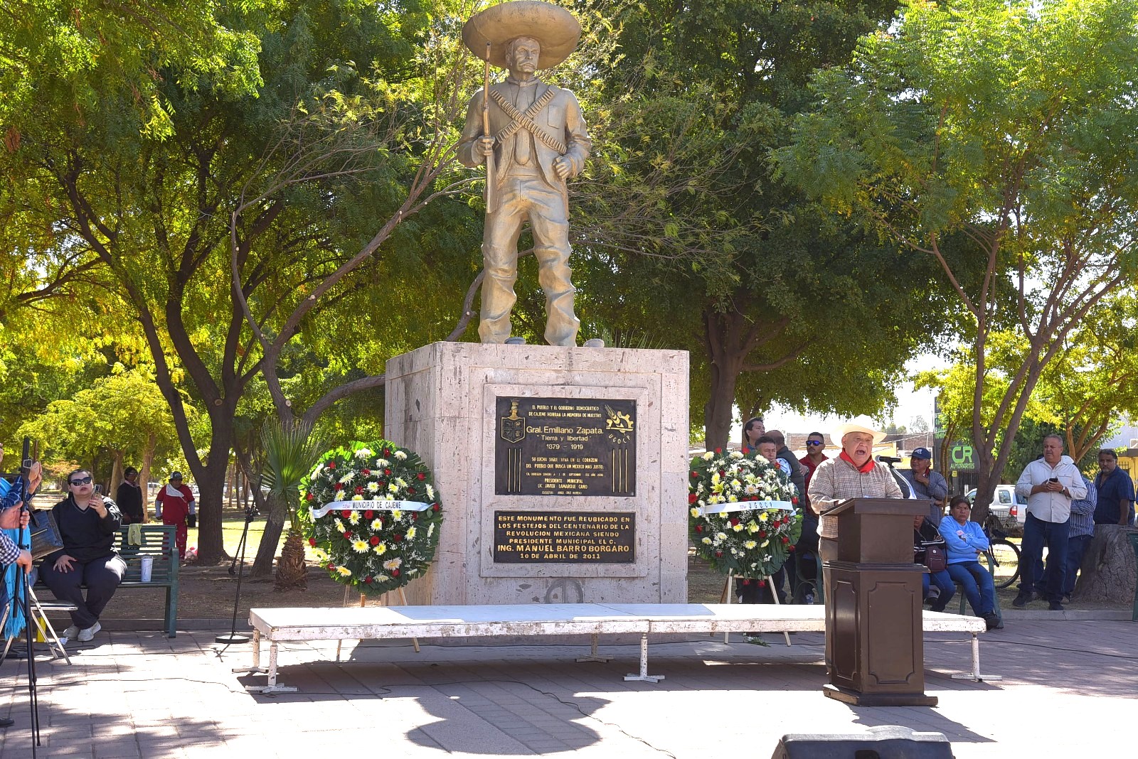 Cuánta falta hacen a nuestra patria hombres íntegros como Emiliano Zapata! expresó´´Mientras haya campesinos sin tierra, productores agropecuarios, pesqueros y acuícolas sin apoyos para la incentivar la producción y comercialización de sus productos, comunidades sin escuelas; pueblos y ciudades sin viviendas, sin hospitales, sin oportunidades de empleo: ¡más falta hace Zapata!