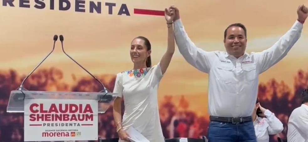 GUAYMAS, SONORA 12 DE ABRIL DE 2024.- La candidata de Morena a la Presidencia de la República, Claudia Sheinbaum Pardo, fue parte esencial del gobierno legítimo que nació con el fraude electoral de Felipe Calderón Hinojosa en 2006, recordó Heriberto Aguilar Castillo.