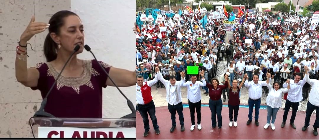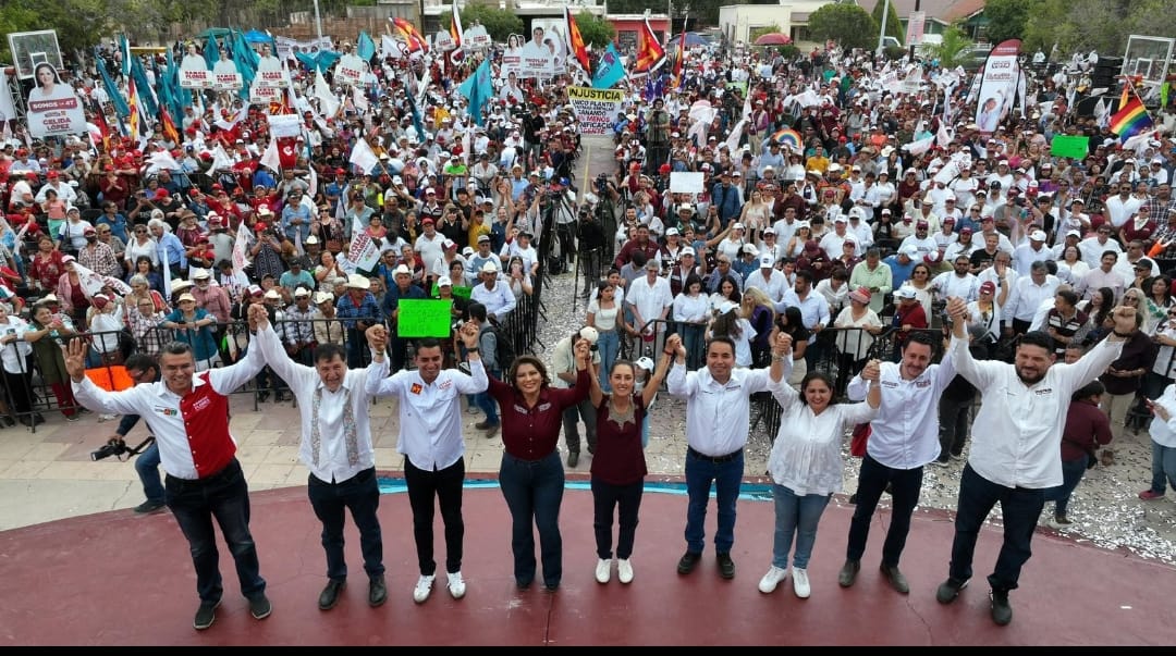En este mismo sentido, Heriberto Aguilar Castillo, candidato al Senado por el Estado de Sonora por Morena, hizo un llamado a que este 2 de junio, en las urnas, se cierre el paso al neoliberalismo que en el pasado privatizó todos los bienes de Sonora y que solo con la 4T han sido recuperados y convertidos en derechos.’’Vamos a decirles este 2 de junio que no queremos que regresen los corruptos del pasado, no van a regresar porque va a continuar la Cuarta Transformación y con la Doctora Claudia Sheinbaum vamos a consolidar el México de justicia, de igualdad, de verdadera democracia (…) Usted representa el anhelo de millones mexicanos y mexicanas, representa las causas que dieron origen a nuestro movimiento, representa la honestidad, forma de vida y de gobierno, representa la esperanza de millones de mexicanos por eso vamos a hacer nuevamente historia (…) La justicia tiene rostro de mujer y se llama Claudia Sheinbaum’’, puntualizó.