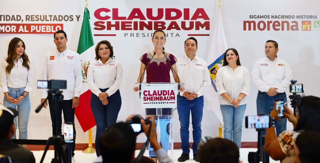 En la conferencia de prensa, Claudia Sheinbaum estuvo acompañada de Lorenia Valles Sampedro, candidata al Senado por el Estado de Sonora por Morena; Heriberto Aguilar Castillo, candidato al Senado por el Estado de Sonora por Morena; Celida López Cárdenas, candidata al Senado por el Estado de Sonora por el Partido del Trabajo (PT); Froylán Gámez Gamboa, candidato al Senado por el Estado de Sonora por el Partido del Trabajo (PT); Diana Karina Barreras Zamaniego, candidata a Diputada Federal Distrito 3, así como Jacobo Mendoza Ruiz, candidato a Diputado Federal Distrito 5.