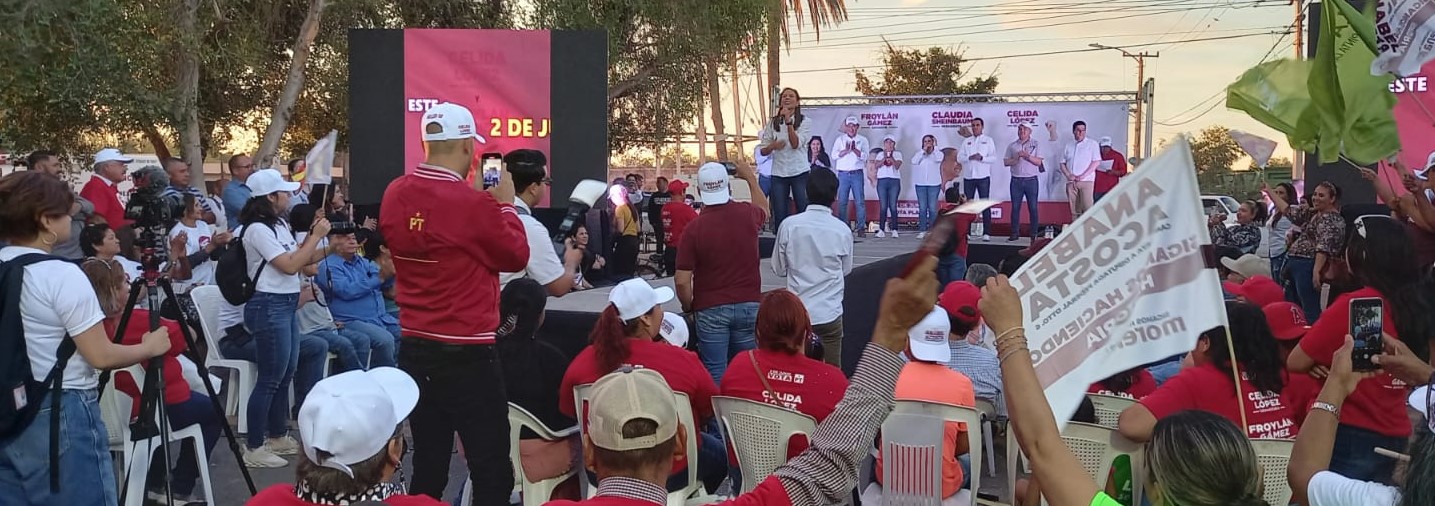La candidata de coalición ´´Sigamos Haciendo Historia´´ acompañó este día en esta comisaría de Cajeme a Célida López y Froylán Gámez, resaltando los compromisos y las 100 propuestas de la abanderada de la 4´T´´ Claudia Sheinbaum.