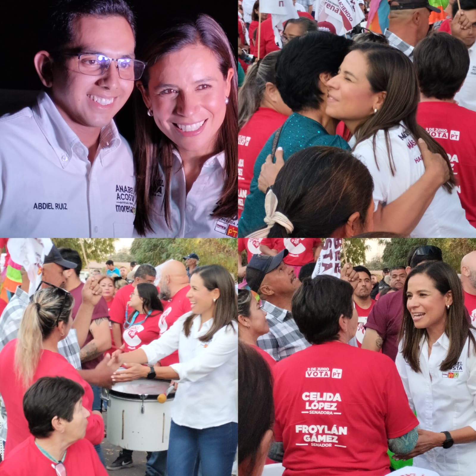 Anabel Acosta, pidió a los vecinos de Pueblo Yaqui, el apoyo para la fórmula al Senado´´´Aquí estamos juntos haciendo equipo con esta fórmula de una mujer valiente y de un hombre comprometido con Sonora, Célida López y froylan, y yo les quiero pedir el apoyo de todo Pueblo Yaqui, para esta fórmula que para nosotros representa apoyar y hacer validar el proyecto del Plan ´´C´´ de nuestra próxima presidenta de la república Claudia Sheinbaum´´ expresó Anabel Acosta.