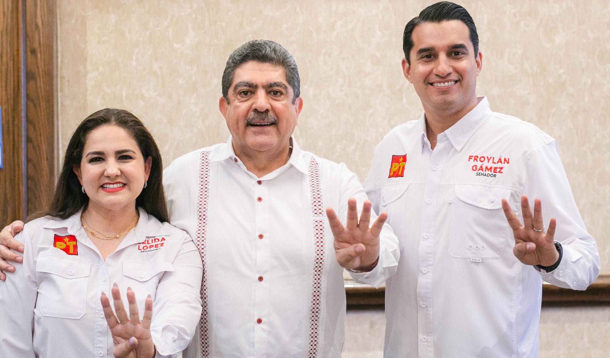 HERMOSILLO, SONORA. 22 DE ABRIL DE 2024.- La dupla al Senado por el Partido del Trabajo (PT) Celida López y Froylán Gámez, dio la bienvenida a Manuel Espino Barrientos en Sonora, quien se ha sumado al equipo de estructura electoral de la candidata a la Presidencia de México, Claudia Sheinbaum.