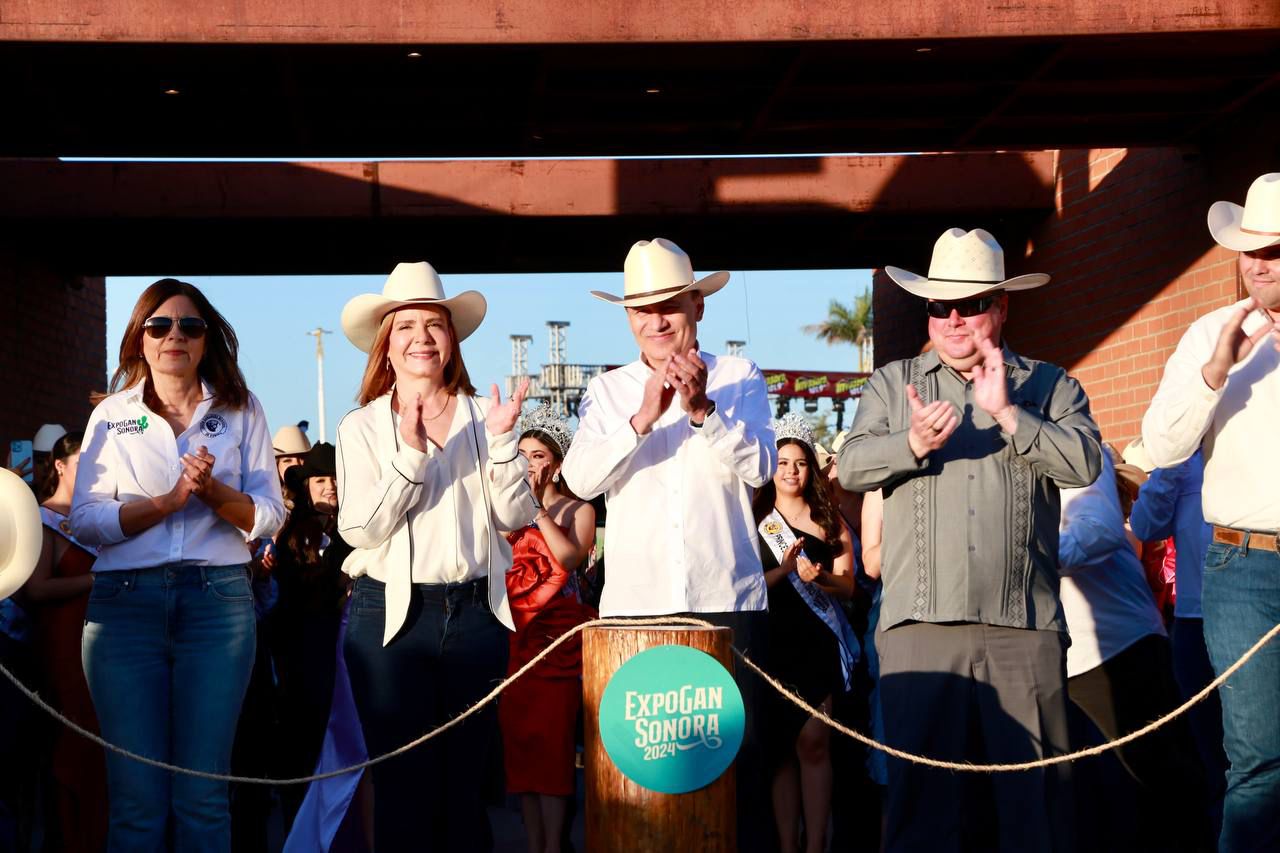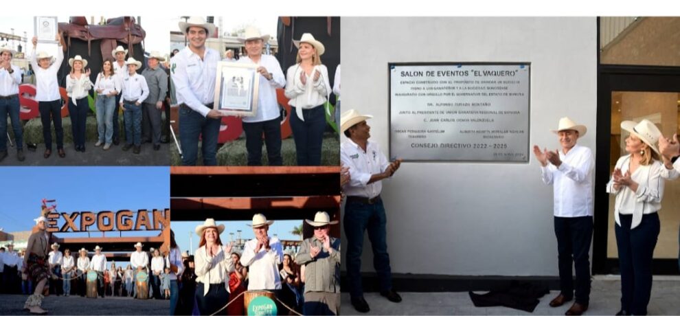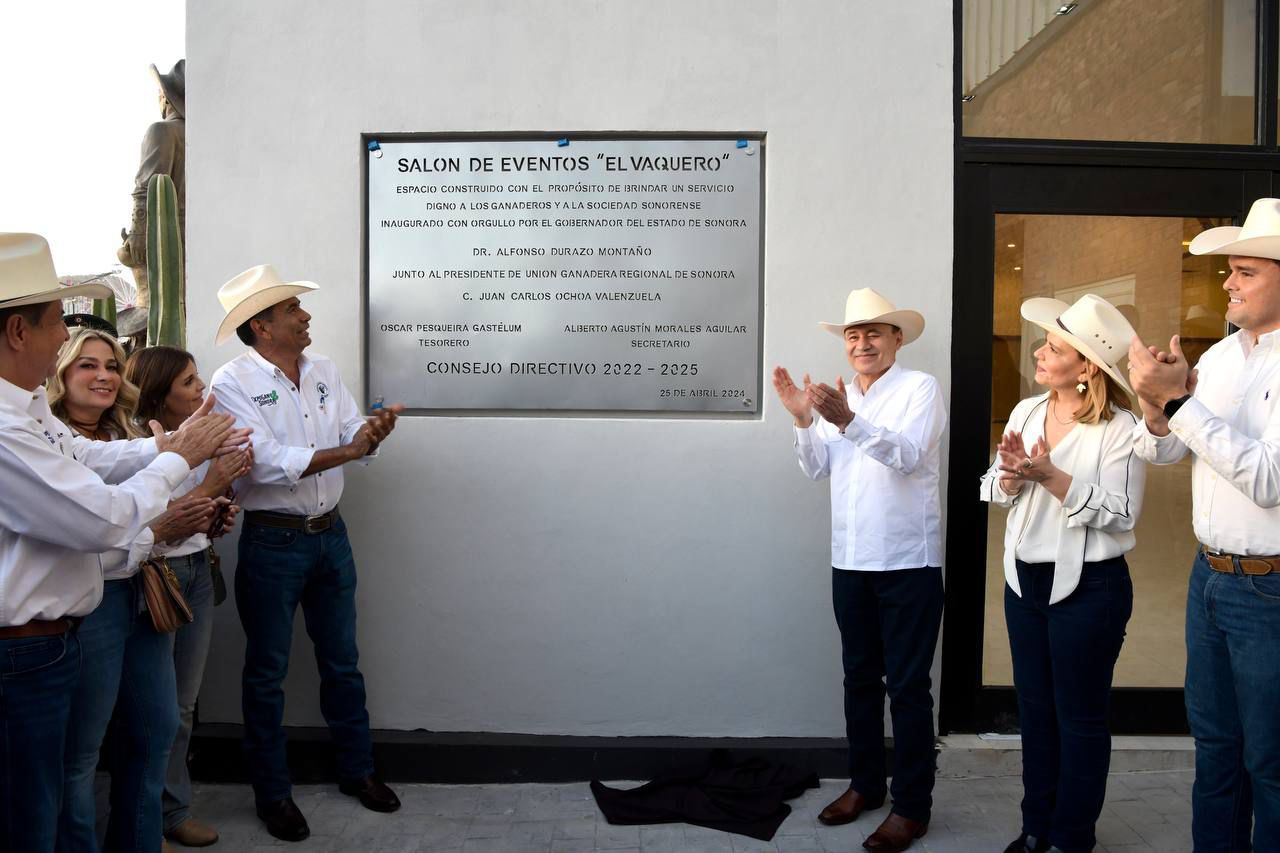 Acompañado de su esposa, la presidenta de DIF Sonora, Rocío Chávez Murillo, el gobernador Durazo visitó las instalaciones de la ExpoGan y develó la estatua y placa del salón de eventos El Vaquero, para después estrenar las instalaciones del Centro de Capacitaciones Ganaderas de México.