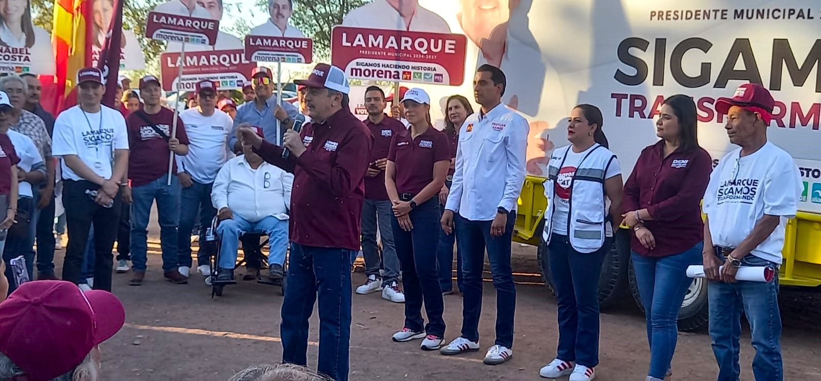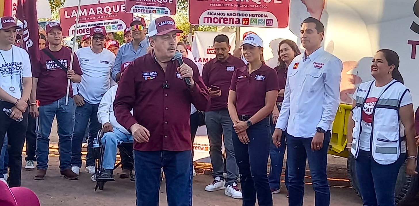 CIUDAD OBREGÓN, SONORA 26 DE ABRIL DE 2024.- En reunión con vecinos de Cajeme, el candidato de la 4T a la reelección de la alcaldía, Javier Lamarque, invitó a que este 2 de junio, en la boleta para el Senado voten por el PT, fórmula que encabezan Celida López y Froylán Gámez.
