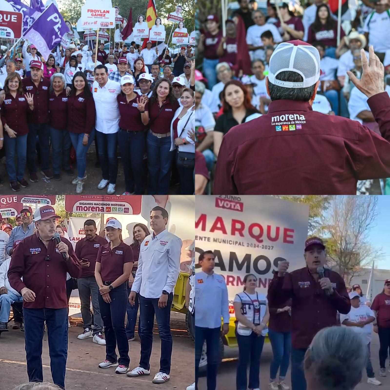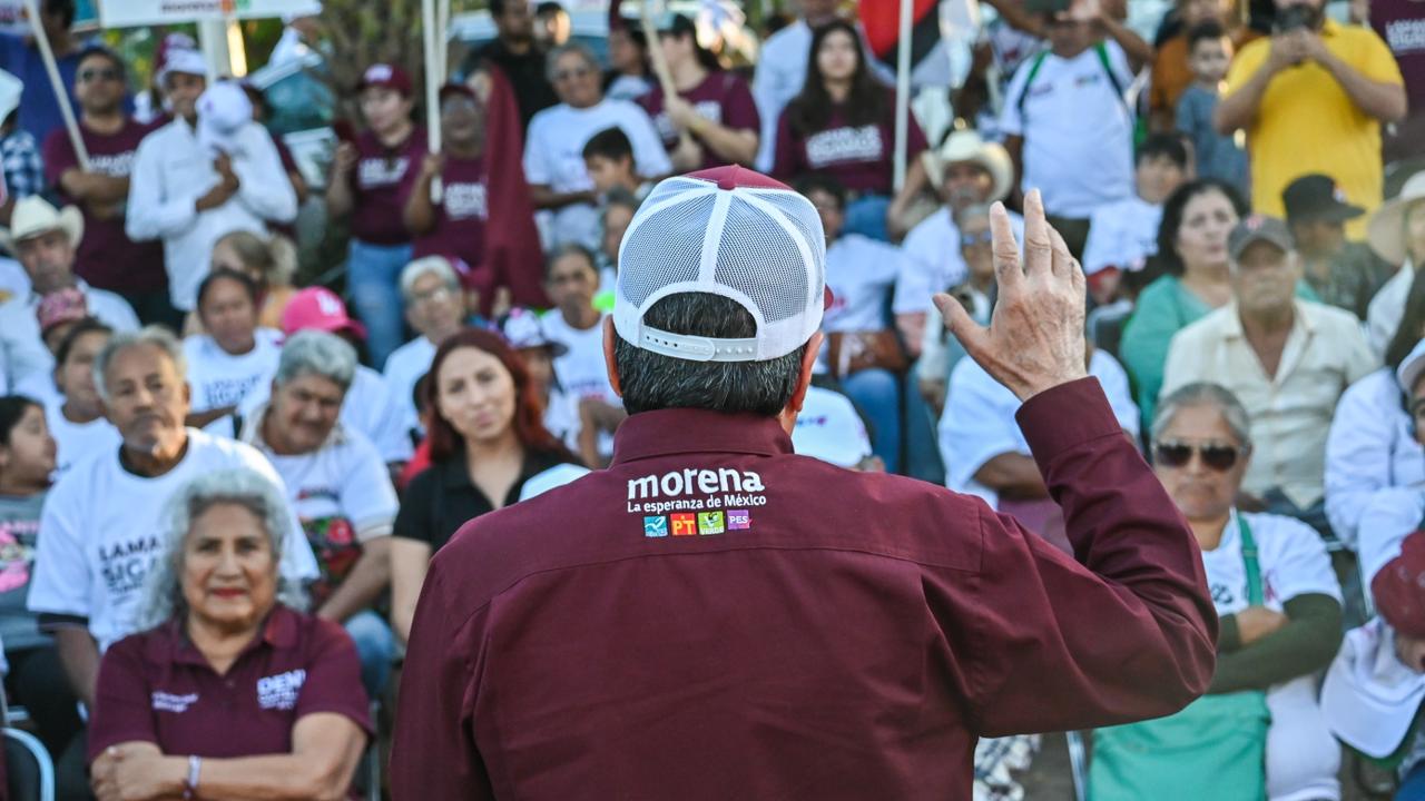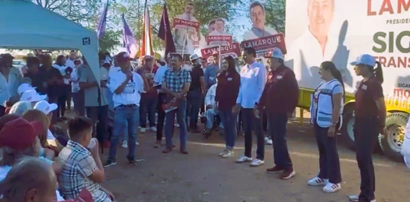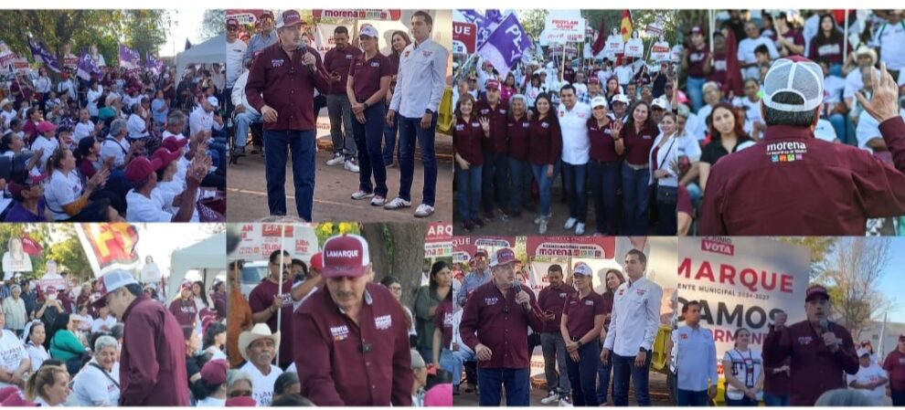 CIUDAD OBREGÓN, SONORA 26 DE ABRIL DE 2024.- “Vamos a seguir ganando porque ya tenemos experiencia, ya sabemos qué puertas vamos a tocar para traer beneficios, a Cajeme”, dijo emocionado Javier García Sánchez, habitante de la colonia Beltrones al inicio del evento que sostuvo el candidato Lamarque, quien estuvo acompañado de la fórmula ganadora por la coalición Sigamos Haciendo Historia.
