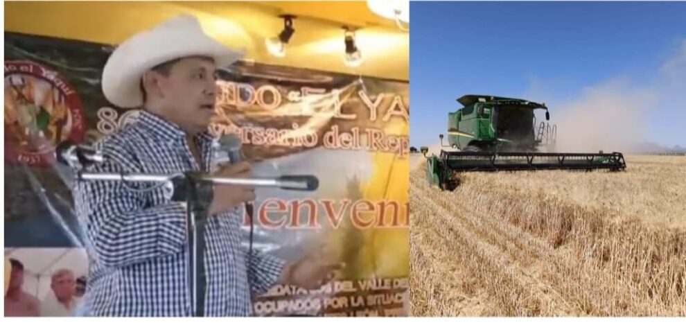 BENITO JÚAREZ, SONORA 29 DE ABRIL DE 2024.- Con rendimientos de producción de seis toneladas por hectárea que se están teniendo en zonas como el Bacame, que comprende 3 módulos de riego Santini 1 y 2 y el módulo Bacame, los productores de trigo solo cosecharán CARTERAS VENCIDAS.
