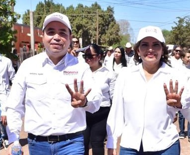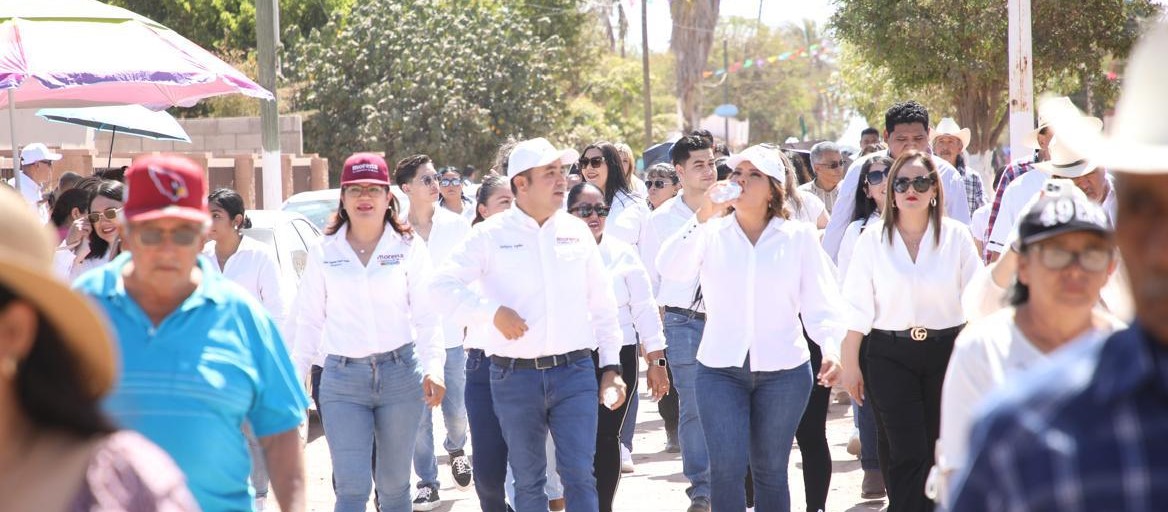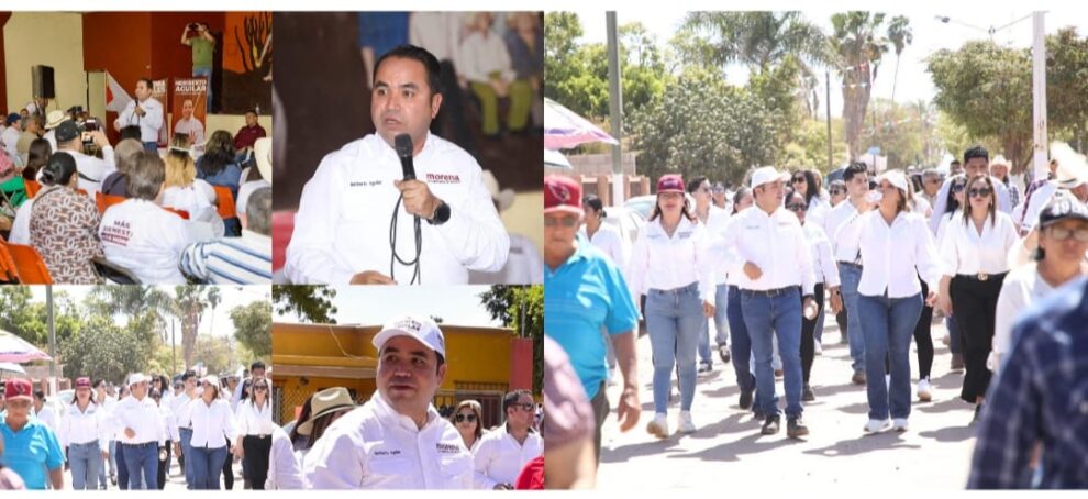 Acompañado del candidato a la presidencia municipal de Bácum y de su compañera de fórmula, Lorenia Valles Sampedro, Heriberto Aguilar Castillo llamó a militantes y simpatizantes a visitar 10 hogares para que en cada uno se logre “convencer a 20 personas” para que la Cuarta Transformación siga.