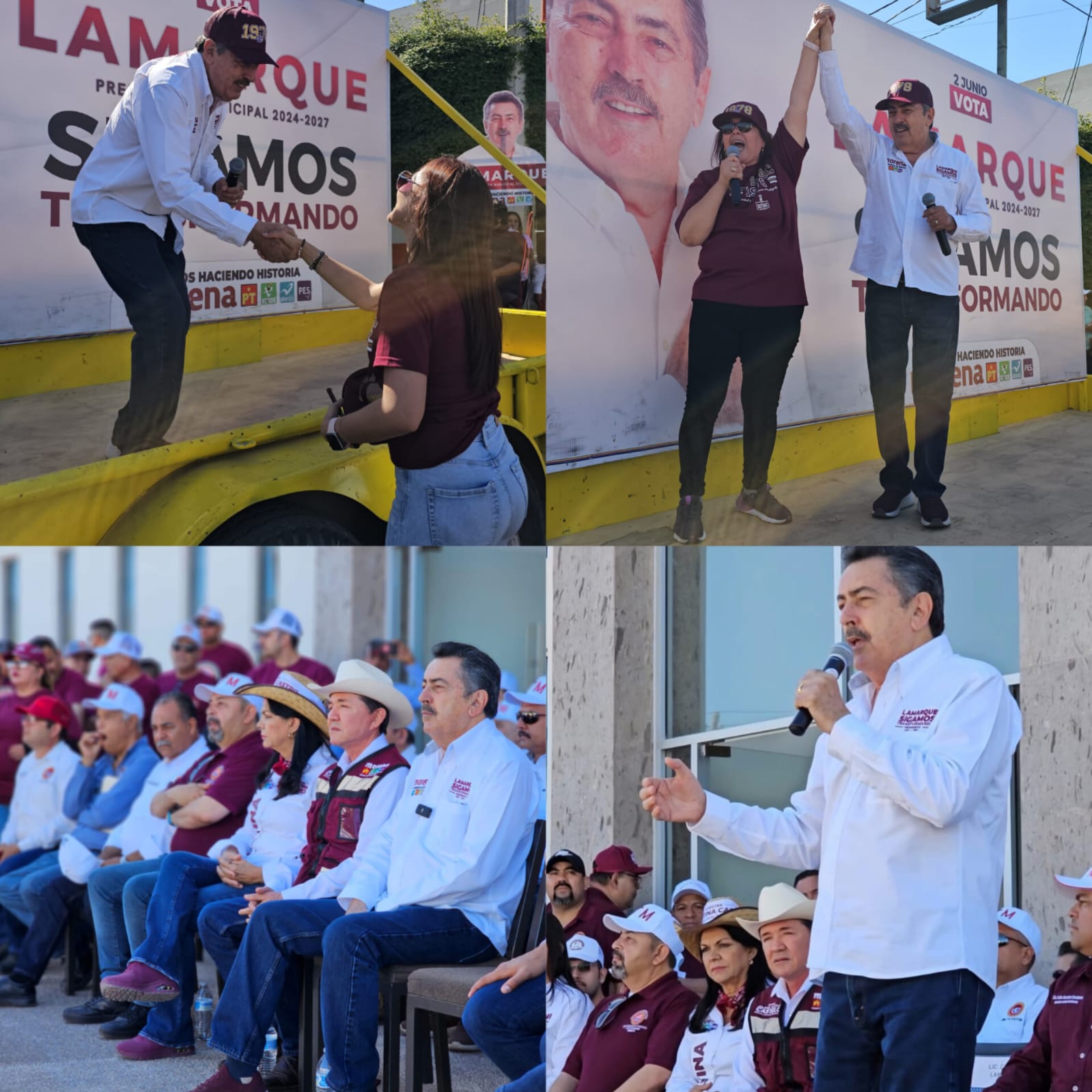 CIUDAD OBREGÓN, SONORA 1 DE MAYO DE 2024.- El candidato a la alcaldía de Cajeme, Javier Lamarque Cano, acompañó al sindicato de la Confederación de Trabajadores de México (CTM), a la conmemoración del Día del Trabajo, donde habló sobre sus compromisos para el desarrollo industrial y así generar más empleos y derrama económica en Cajeme.