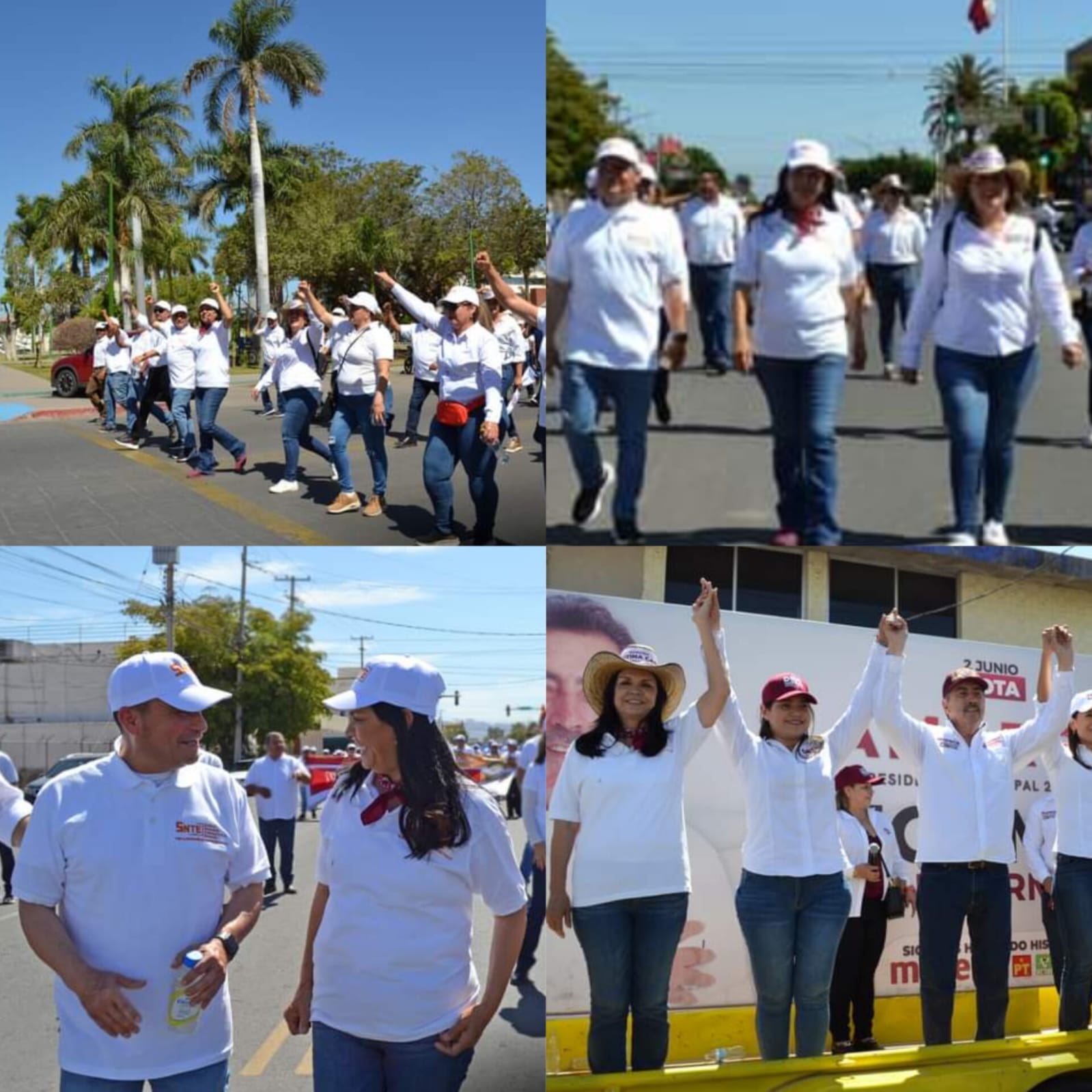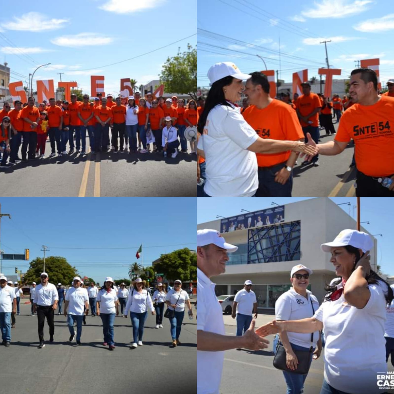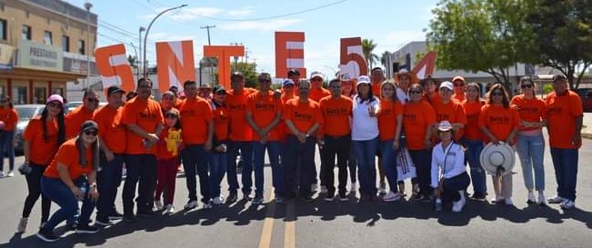 CIUDAD OBREGÓN, SONORA 1 DE MAYO DE 2024.-La candidata  del partido MORENA a la diputación local  por el Distrito 15 Cajeme,   Ernestina Castro Valenzuela,   participó en la conmemoración del  ´´Dia del Trabajo´´,  atendiendo las peticiones de los afiliados a los distintos sindicatos en el tradicional desfile  que se celebró en Ciudad Obregón, entre ellos   a los maestros del  Sindicato Nacional de Trabajadores de la Educación ( SNTE)