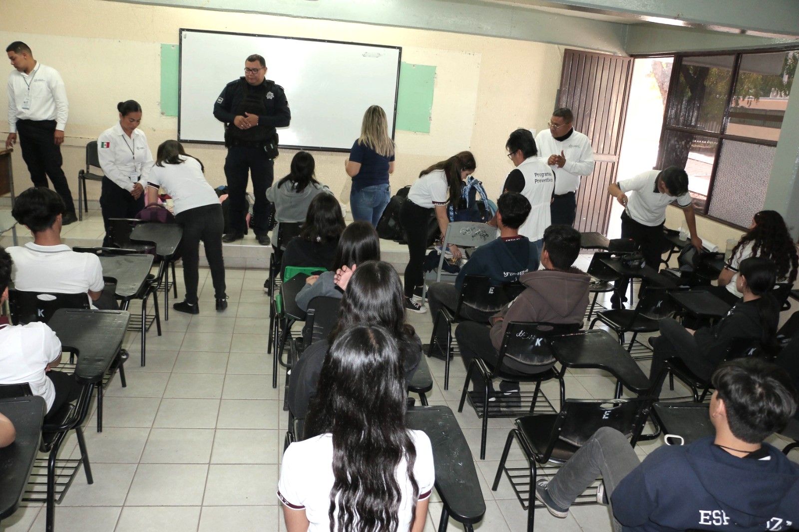 CIUDAD OBREGÓN, SONORA 3 DE MAYO DE 2024.- La Secretaría de Seguridad Pública Municipal a través de Programas Preventivos, informa a la comunidad sobre los resultados obtenidos tras la implementación del programa “Revisión Mochila” en colaboración con directivos del Centro de Bachillerato Tecnológico Industrial y de Servicios (Cbtis) 37.