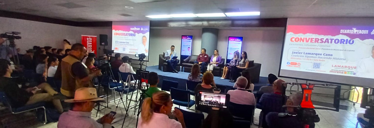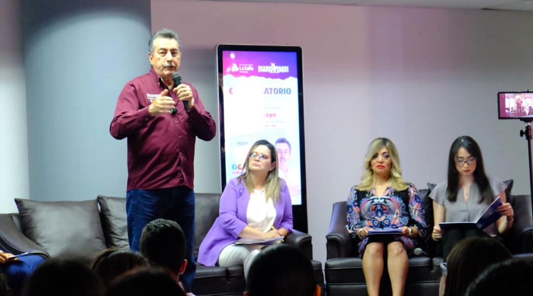 CIUDAD OBREGÓN, SONORA 8 DE MAYO DE 2024.- Para promover y robustecer los ejercicios de participación ciudadana y permitir que la sociedad mejore su conocimiento sobre los compromisos del candidato por la coalición Sigamos Haciendo Historia, Javier Lamarque Cano, la Universidad La Salle en coordinación con el Diario del Yaqui, llevó a cabo el Conversatorio “Escucharnos, reflexionar y construir”.