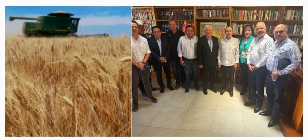 CIUDAD OBREGÓN, SONORA 13 DE MAYO DE 2024; Mario Pablos Domínguez, presidente del grupo Tres Valles, dio a conocer que luego de la reunión que sostuvieron este día en Hermosillo, con el gobernador del Estado Alfonso Durazo y con Víctor Villalobos, Secretario de la SADER, se vislumbró la buena disposición de las autoridades estatales y federales, en lo relativo al apoyo de comercialización del trigo cristalino de 750 pesos de apoyo por tonelada más 200 pesos de compra de cobertura.
