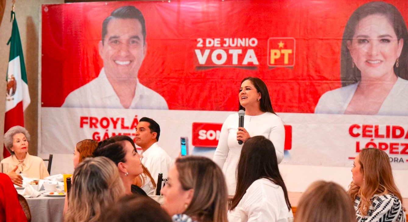 Celida López destacó que faltan solo cinco puntos para lograr el Plan C de la Dra. Claudia Sheinbaum en Sonora y recordó a los presentes que con votar por el PT y su fórmula es apoyar a la 4T y significa impedir que Manlio Fabio Beltrones y Lilly Téllez, candidatos prianistas, lleven la corrupción a la Cámara Alta.