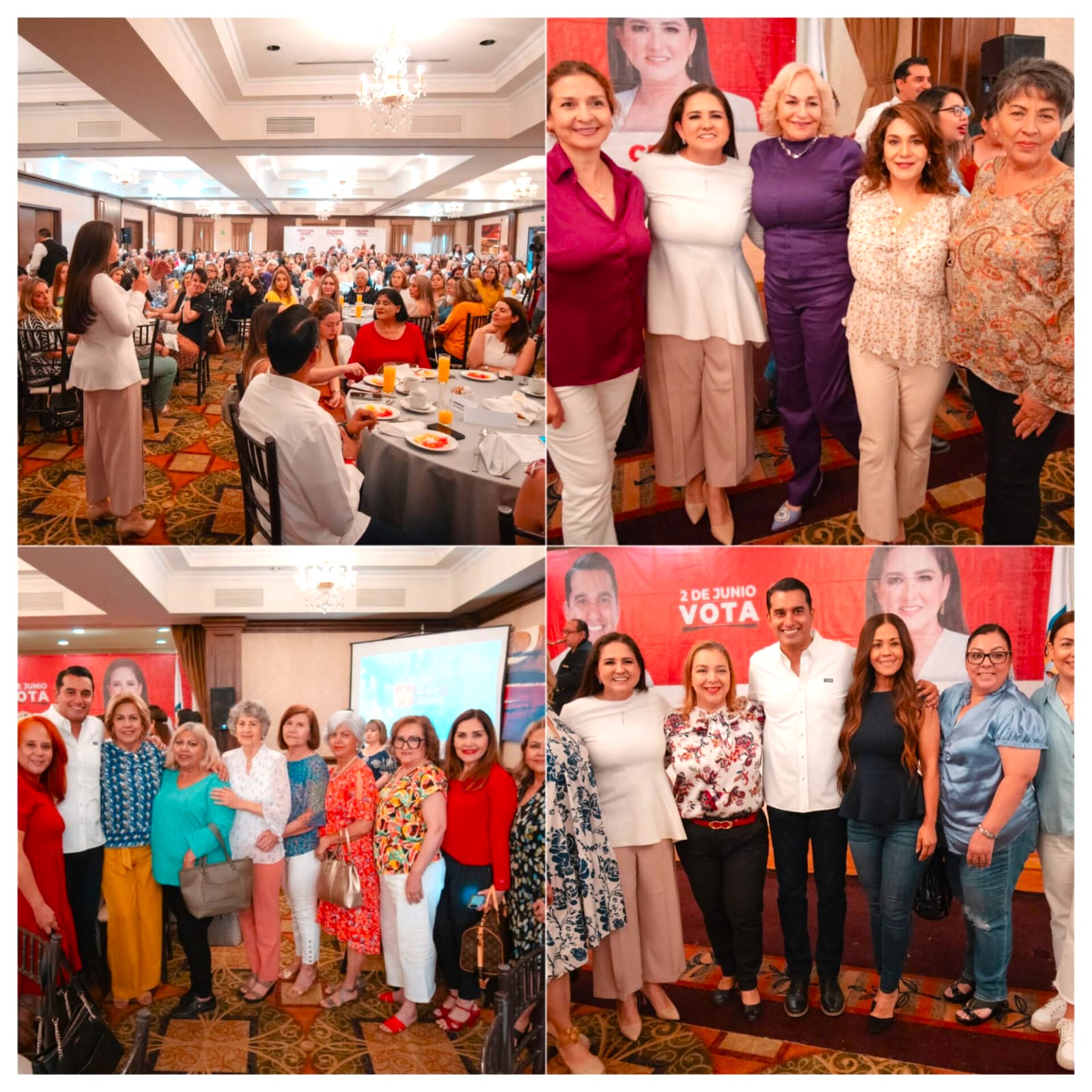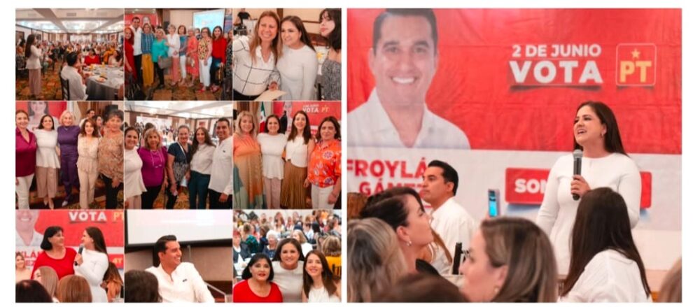 HERMOSILLO, SONORA 14 DE MAYO DE 2024.- Los candidatos por el Partido del Trabajo (PT) al Senado, Celida López y Froylán Gámez, consiguieron la aprobación y el impulso de más de 250 mujeres representantes de los distintos sectores de la capital del estado.