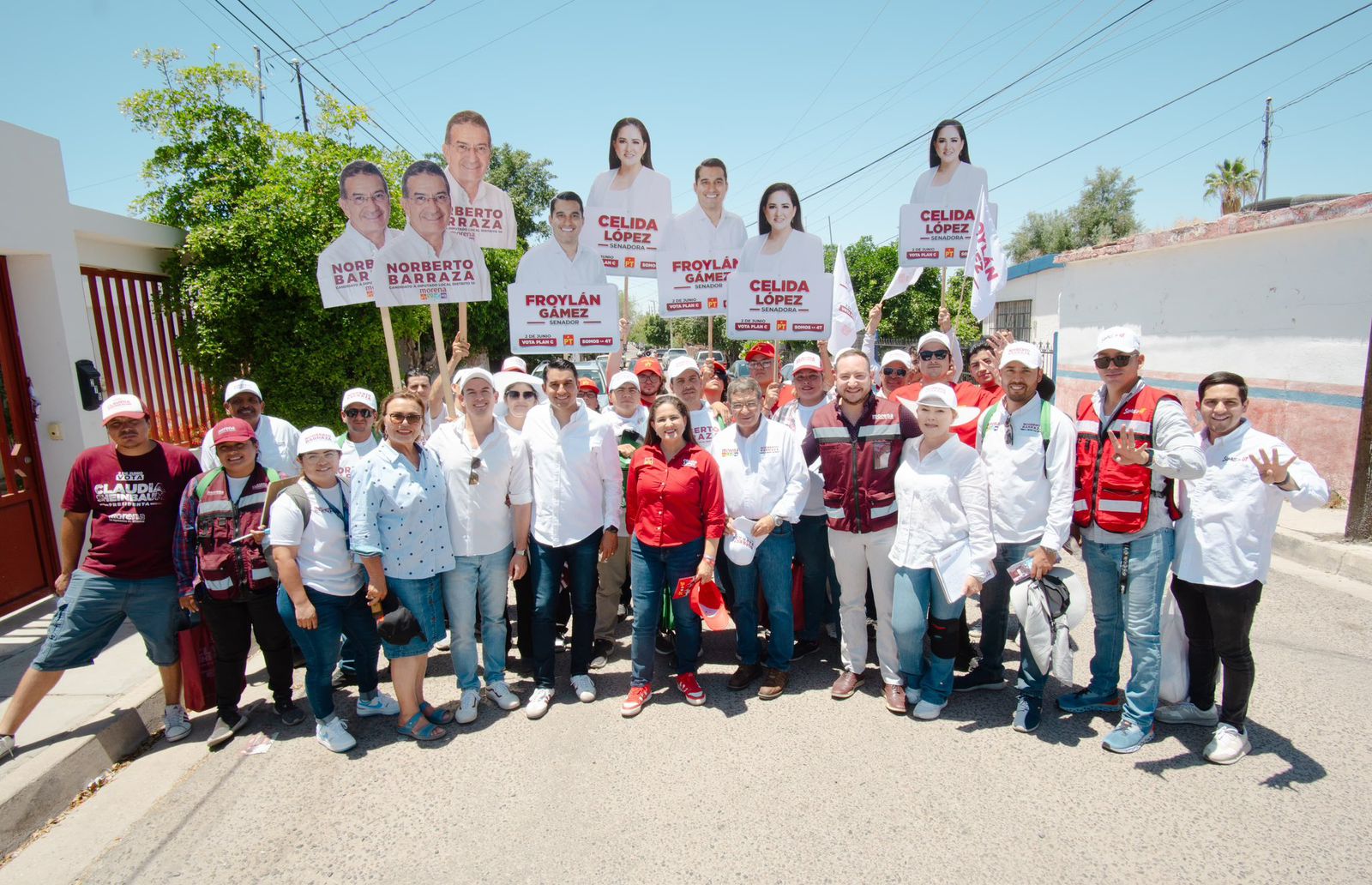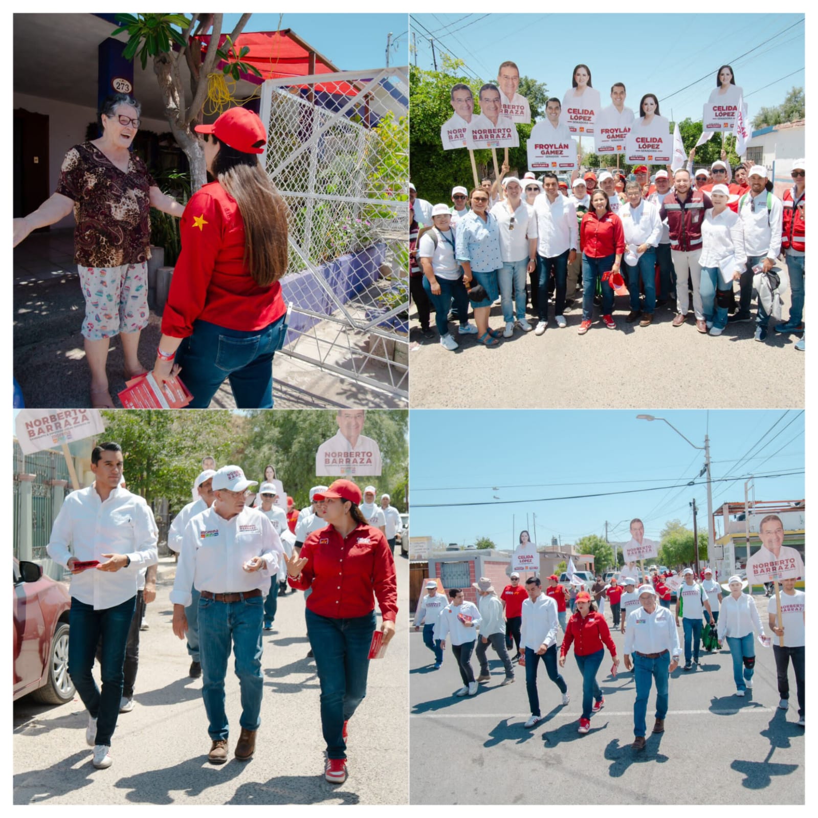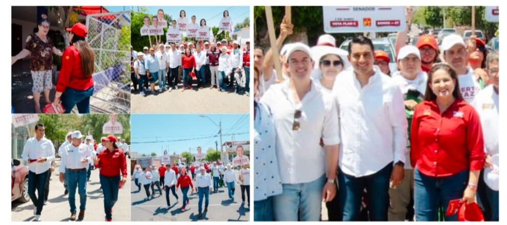 HERMOSILLO, SONORA 15 DE MAYO DE 2024.– Celida López y Frolyán Gámez, candidatos al Senado por el Partido del Trabajo, tuvieron un recorrido doble en el parque la Antena, en Palo Verde, y por las calles de la colonia Ley 57, con el fin de seguir sumando apoyos para lograr el Plan C