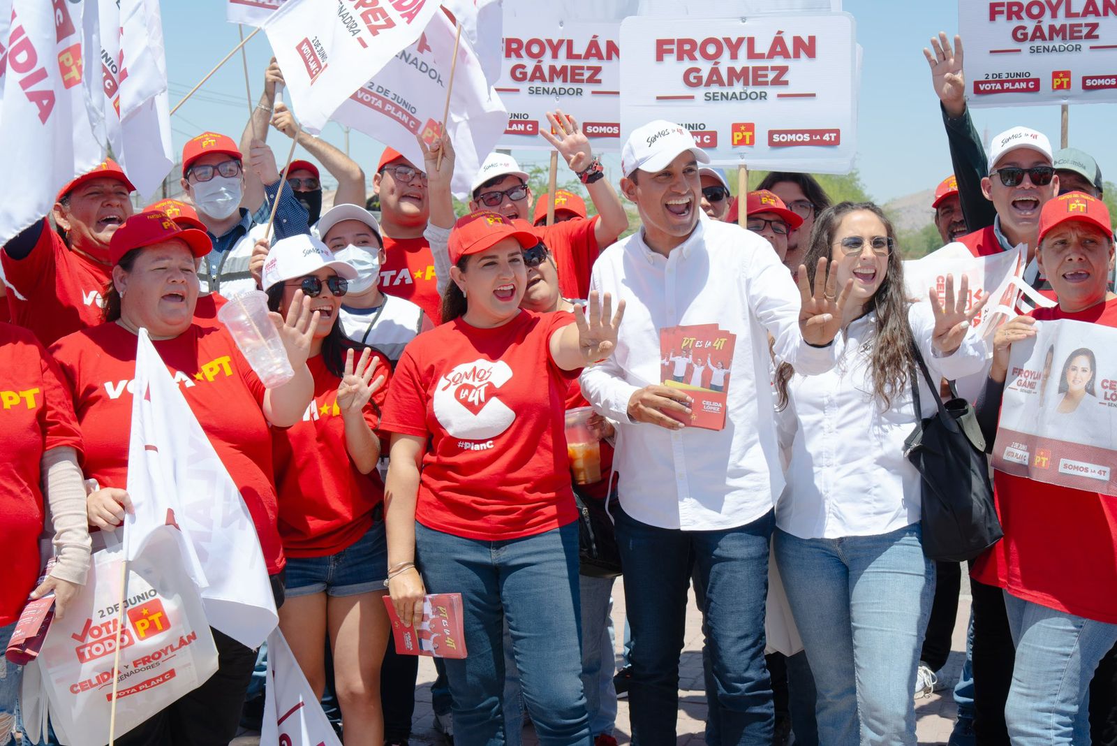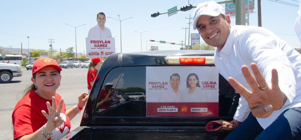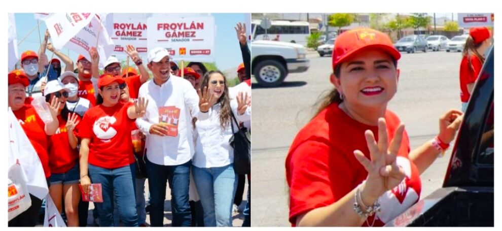 HERMOSILLO, SONORA 17 DE MAYO DE 2024.- Con entusiasmo los candidatos al Senado por el Partido del Trabajo (PT), Celida López y Froylán Gámez, redoblaron esfuerzos este viernes con múltiples actividades y eventos en la capital del estado, en Caborca y en el municipio de Altar, con el fin de mantener el crecimiento notable que se ha observado a favor de su fórmula.