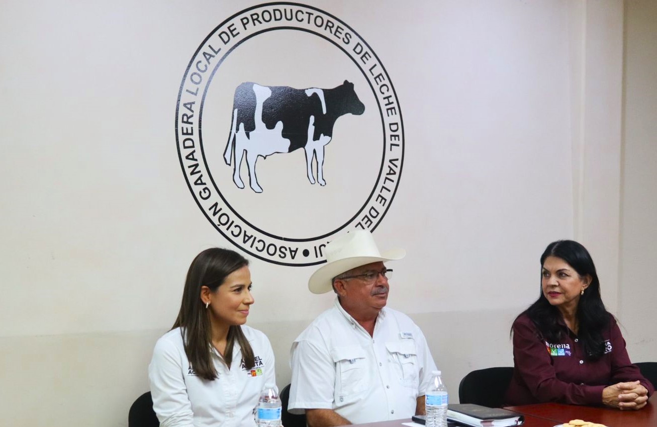 CIUDAD OBREGÓN, SONORA 18 DE MAYO DE 2024.– Integrantes de la Asociación Ganadera Local de Productores de Leche del Valle del Yaqui plantearon algunas propuestas a las candidatas de la coalición Sigamos Haciendo Historia, con el objetivo de trabajar en conjunto y eficientar la actividad en la región.