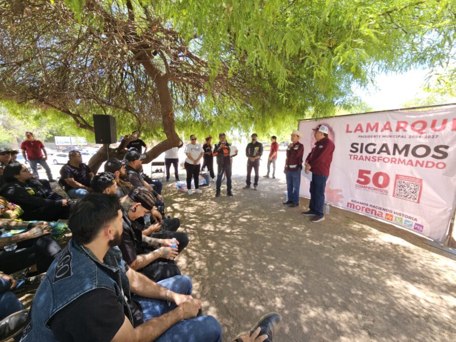 CIUDAD OBREGÓN, SONORA 19 DE MAYO DE 2024.- El candidato de la Coalición Sigamos Haciendo Historia, Javier Lamarque Cano, brindó un espacio de encuentro con la comunidad de motociclistas para escuchar sus necesidades y tomarlas en cuenta al establecer más compromisos para el Municipio de Cajeme.