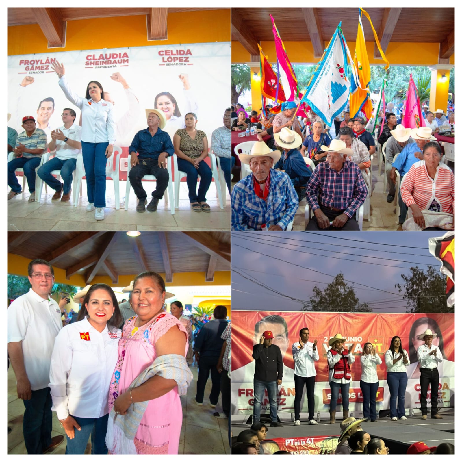NAVOJOA, SONORA 19 DE MAYO DE 2024.- La fórmula al Senado por el Partido del Trabajo (PT), Celida López y Froylán Gámez ha intensificado su empeño de reforzar el Plan C y conquistar la simpatía de los sonorenses con múltiples eventos en Hermosillo, Carbó y Navojoa este domingo.