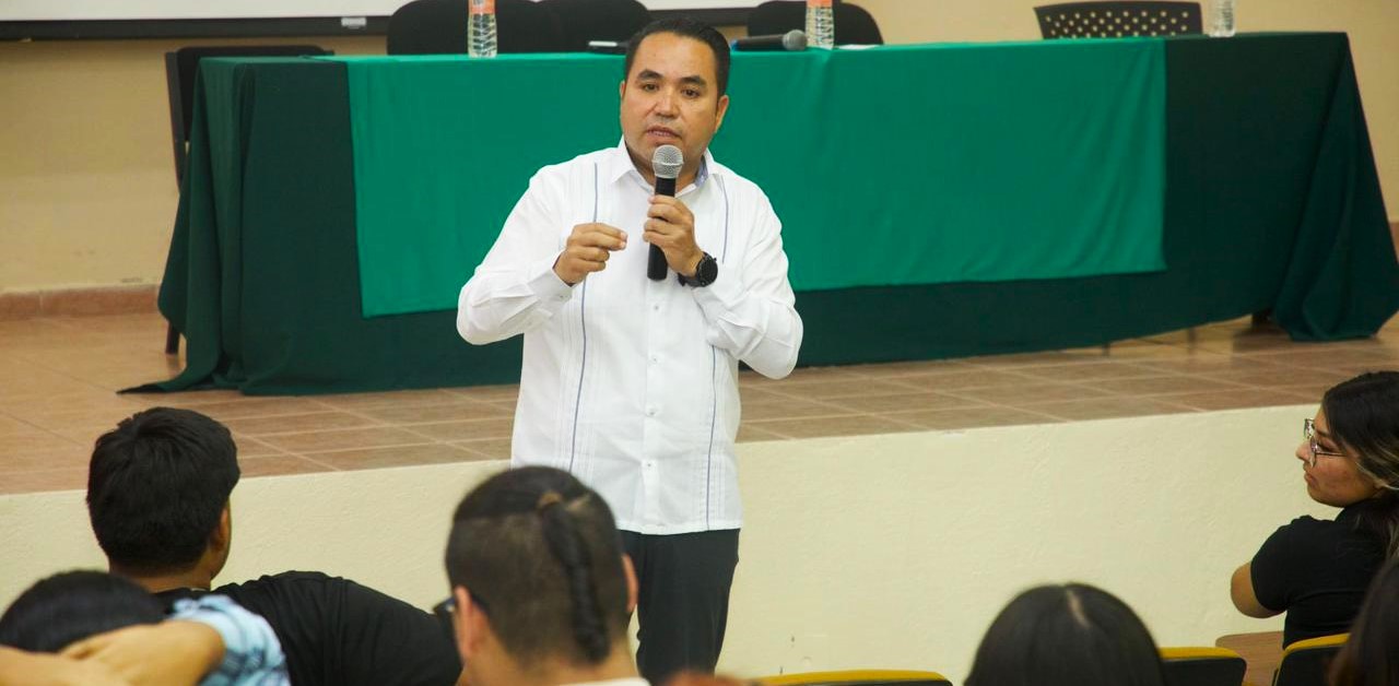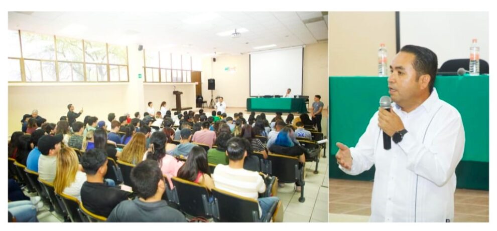 Junto con Lorenia Valles Sampedro, compañera de fórmula al Senado de la República por Morena, Aguilar Castillo expuso a las y los estudiantes que hace 27 años ingresó a la carrera de Ingeniería Civil en la Universidad de Sonora, donde inició su activismo por la educación gratuita y acudió al llamado de López Obrador para revolucionar conciencias: