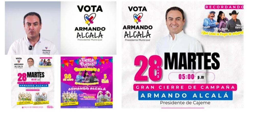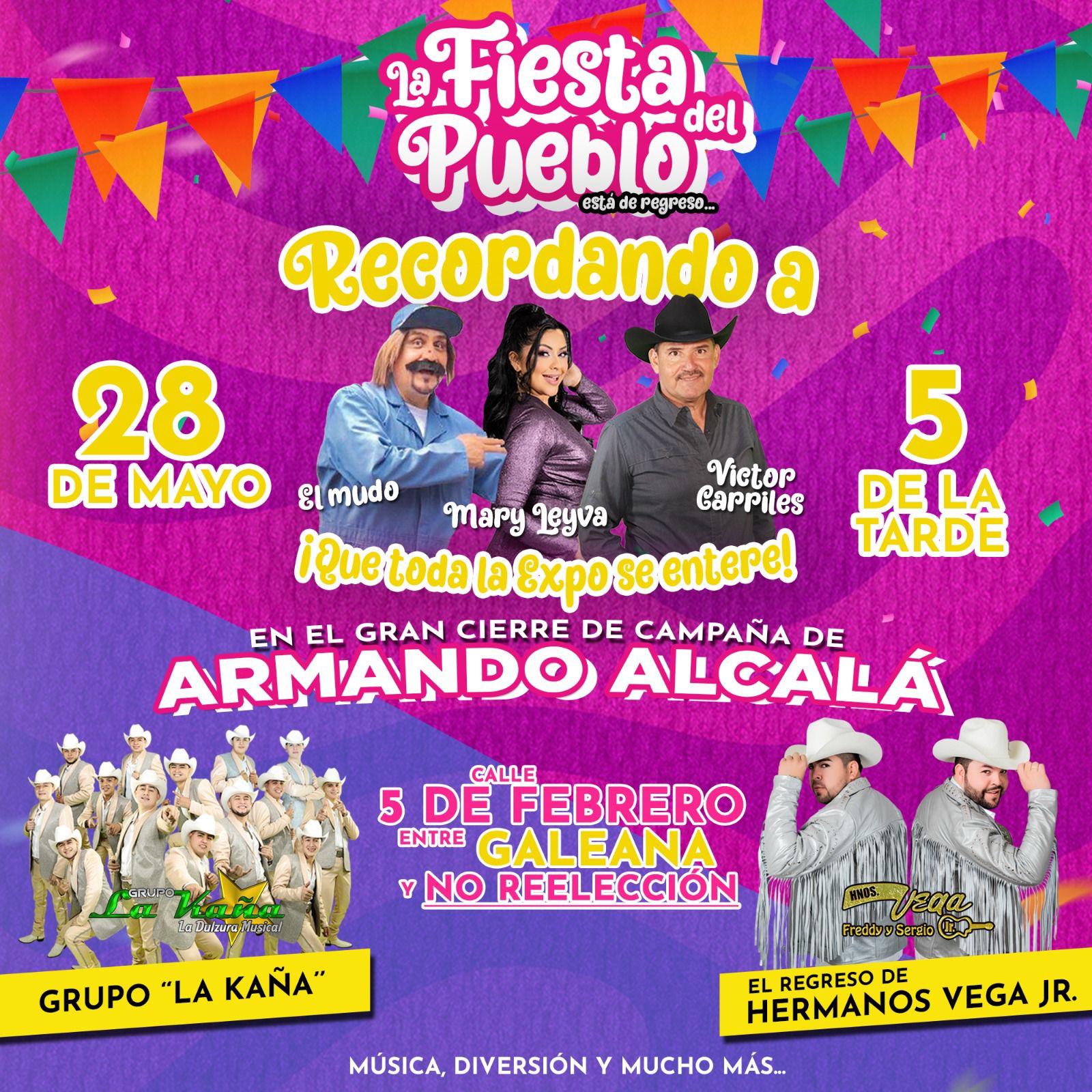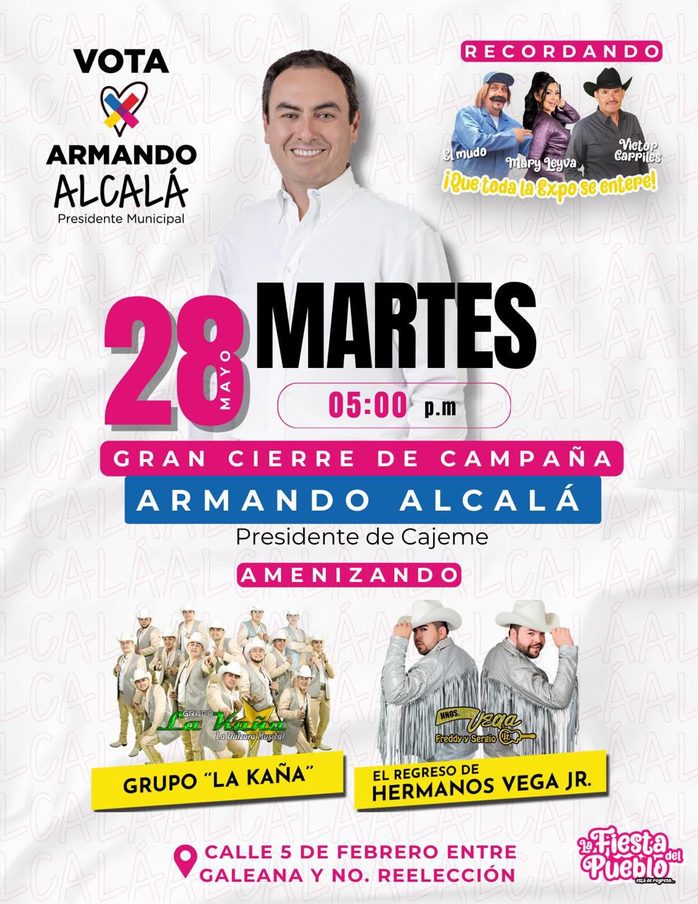 CIUDAD OBREGÓN, SONORA 25 DE MAYO DE 2024.- Para reafirmar el compromiso de regresar los eventos culturales y de entretenimiento a Cajeme, el candidato a la presidencia municipal, Armando Alcalá Alcaraz, tendrá su gran cierre de campaña el próximo 28 de mayo recordando a “Que toda la Expo se entere”.