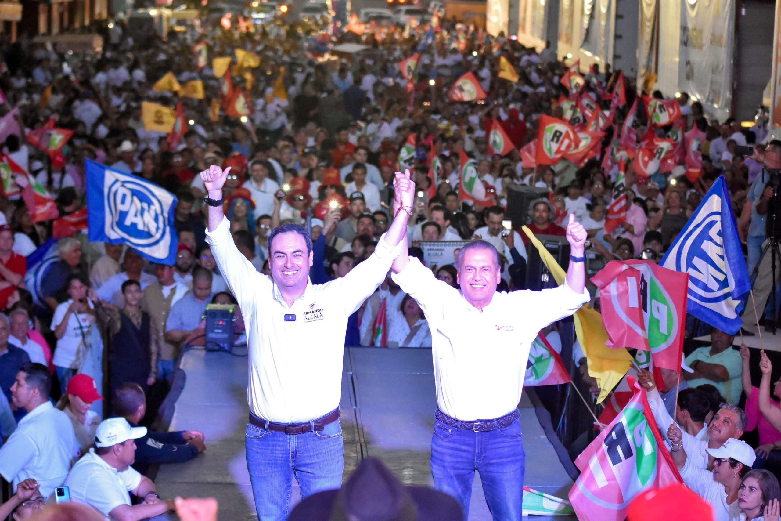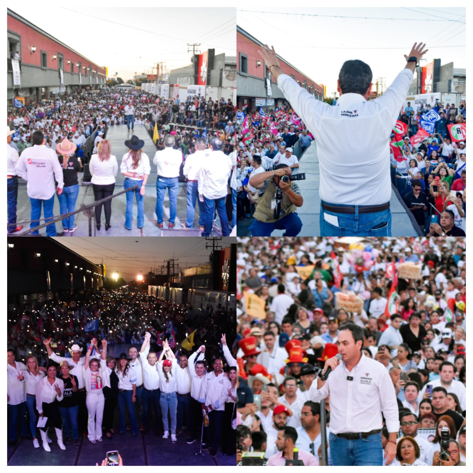 CIUDAD OBREGÓN, SONORA 28 DE MAYO DE 2024.- Con la participación de miles de personas convencidas de que Cajeme merece un cambio, el candidato a la presidencia municipal culminó su campaña en el centro de Ciudad Obregón junto a toda la fórmula de la coalición Fuerza y Corazón por Sonora.