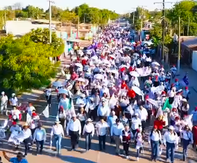 Previamente, Serge Enriquez, y su planilla, realizaron una larga caminata por el área urbana y rural del municipio acompañado de Rebeca Silva candidata a la diputacion local por el distrito 14 y de cientos vecinos de las comunidades quienes están convencidos del proyecto continuo del candidato a la alcaldía de Bácum.