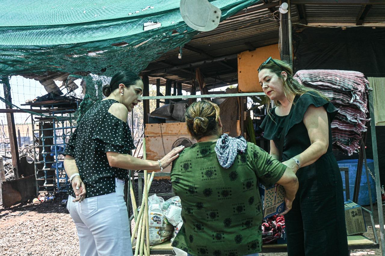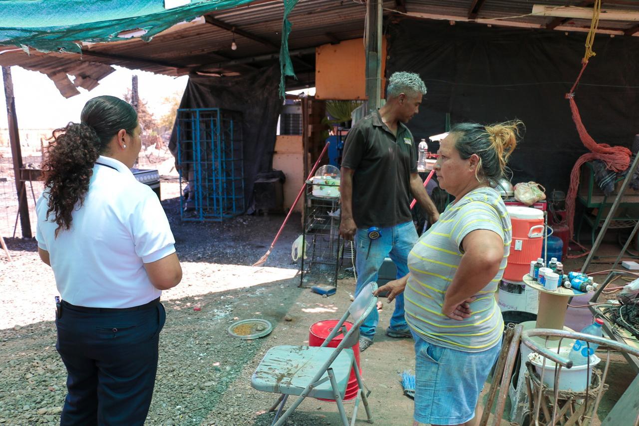 Encabezados por la Presidenta de voluntariado de DIF Cajeme, Lic. Mairdel Rocío Cervantes Soto, y programas Preventivos brindaron apoyo con materiales de construcción a las familias afectadas por incendio, donando un total de 86 tarimas, además de alimentos, cobijas, materiales de limpieza, pañales y ropa.