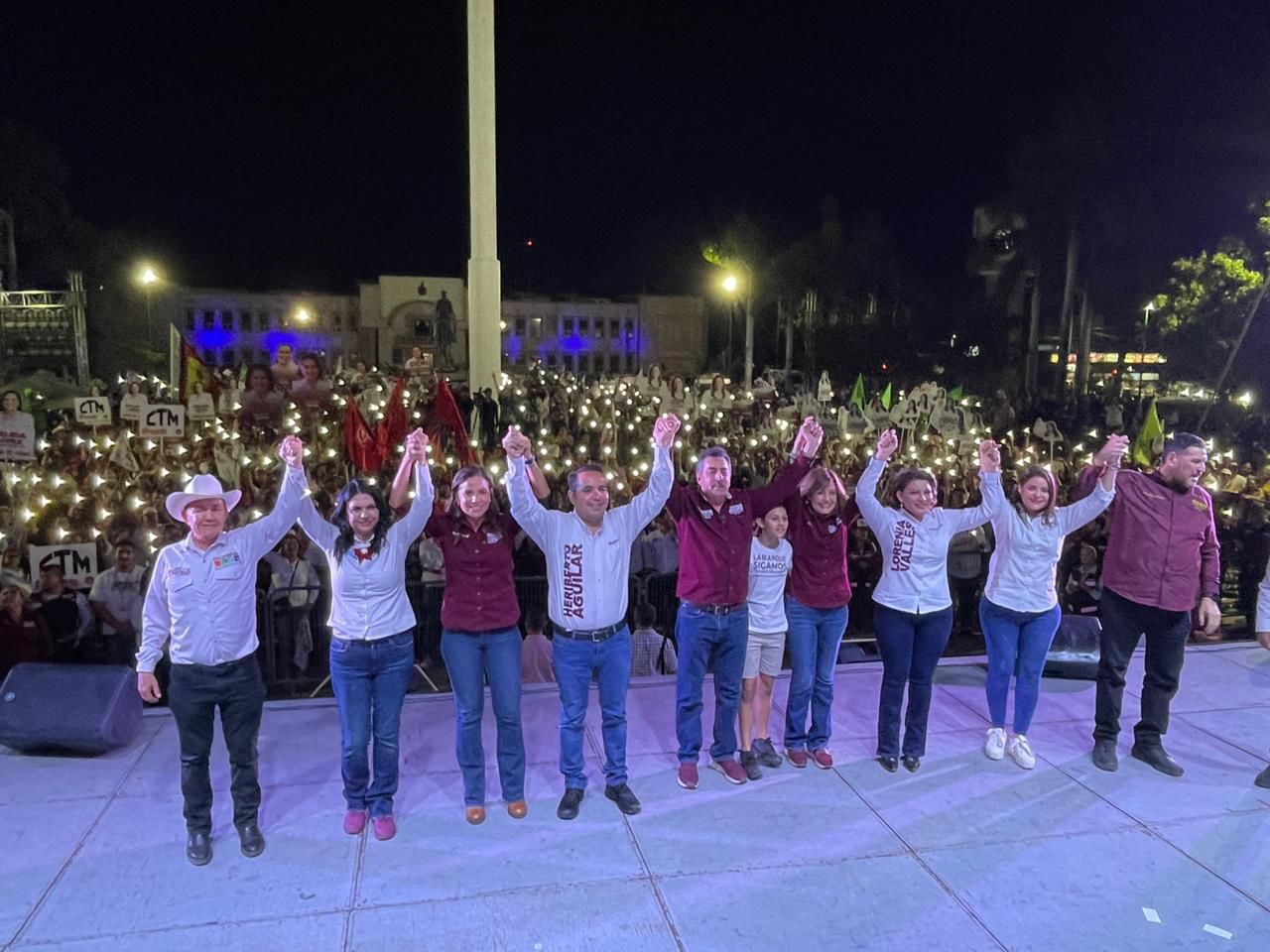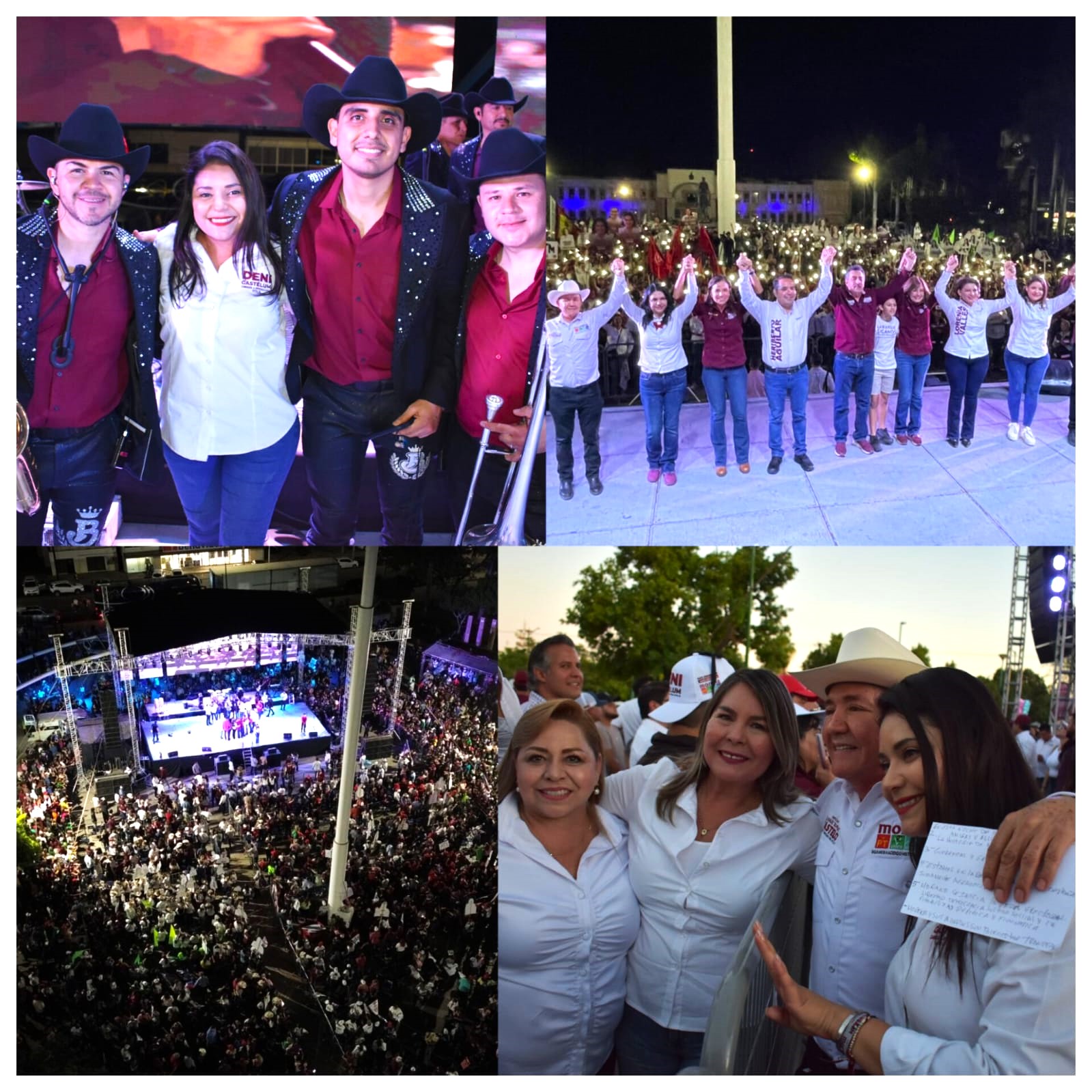 CIUDAD OBREGÓN, SONORA 29 DE MAYO DE 2024.- En una demostración impresionante de apoyo, miles de personas se congregaron frente al Palacio Municipal de Cajeme para el gran cierre de campaña de Deni Gastelum, candidata a diputada local por el distrito 16, y toda la fórmula de Morena. El evento se convirtió en una fiesta popular, reafirmando el compromiso y entusiasmo de los ciudadanos con el proyecto de transformación que representa Morena.