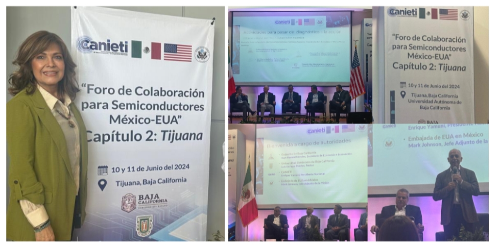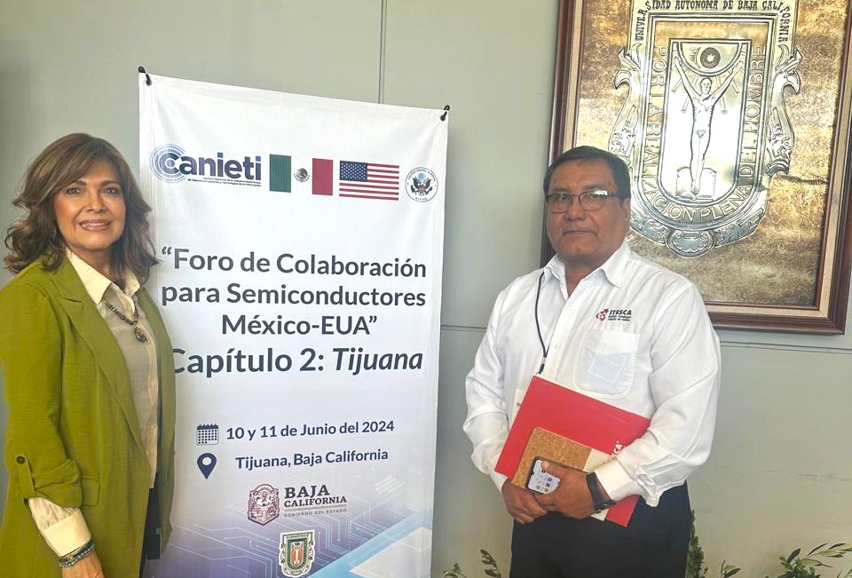 CIUDAD OBREGÓN, SONORA 11 DE JUNIO DE 2024.– El Instituto Tecnológico Superior de Cajeme (ITESCA), participa activamente en el “Segundo Foro de Colaboración MX-EUA de la Industria de Semiconductores”, organizado por CANIETI (Cámara Nacional de la Industria Electrónica, de Telecomunicaciones y Tecnologías de la Información) y el Gobierno de Estados Unidos, el cual se desarrolla en la Universidad Autónoma de Baja California, los días 10 y 11 de junio del presente año.