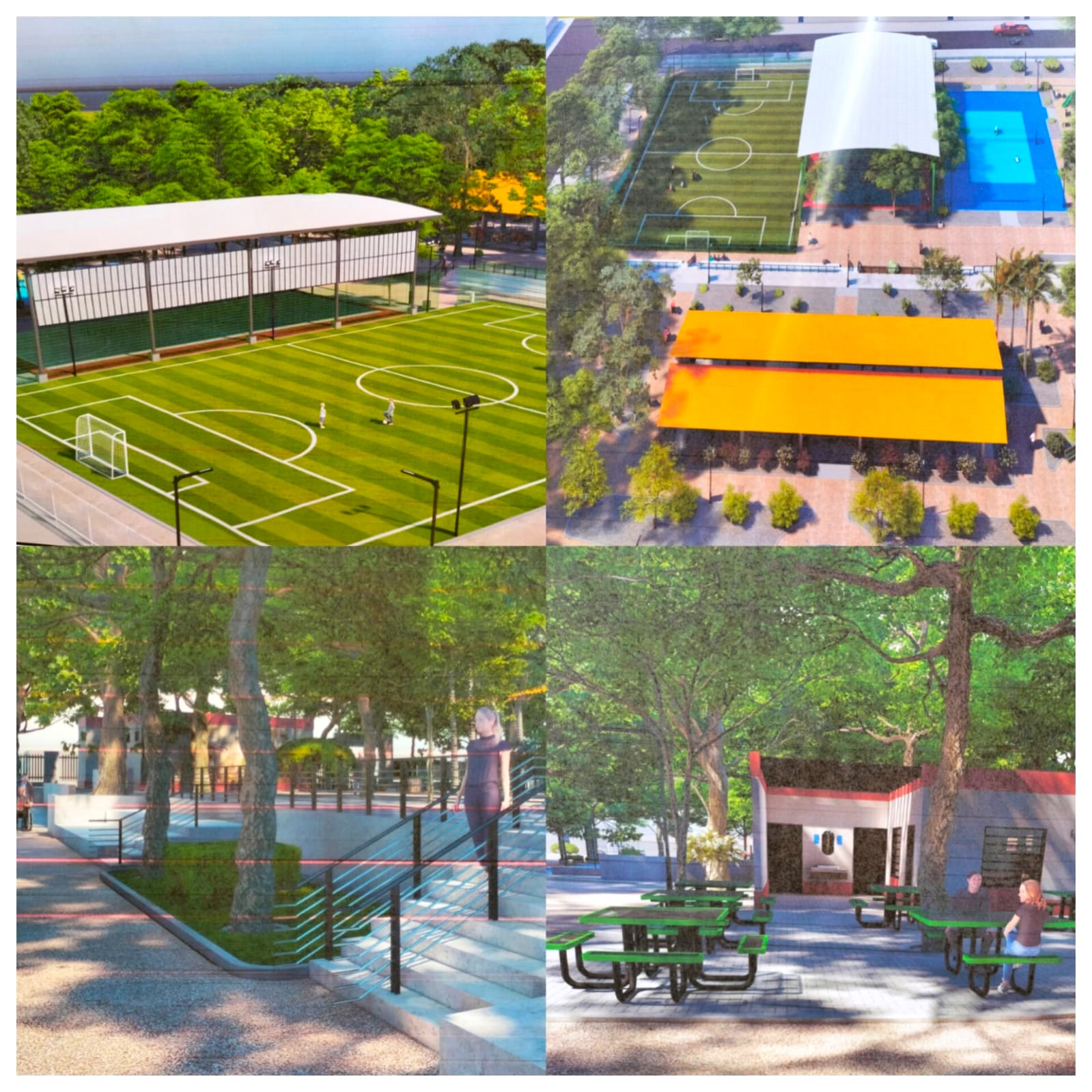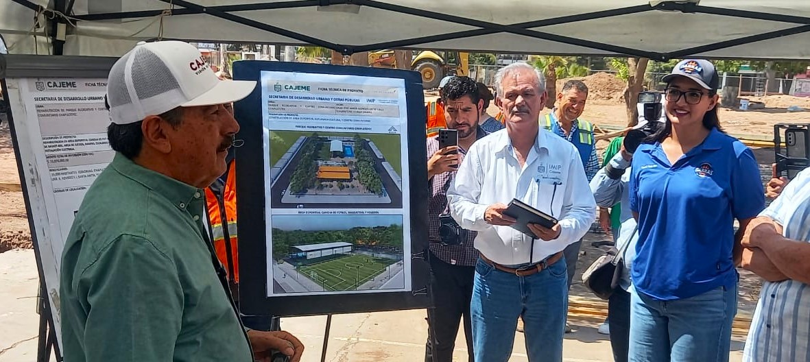 El proyecto contempla la contrucción de un área deportiva, explanada cultural y de un centro comunitario, además de contar con cancha de fútbol, básquetbol, voleibol, área de mesas, área de nadadores y jardines, y el monumento al maestro.