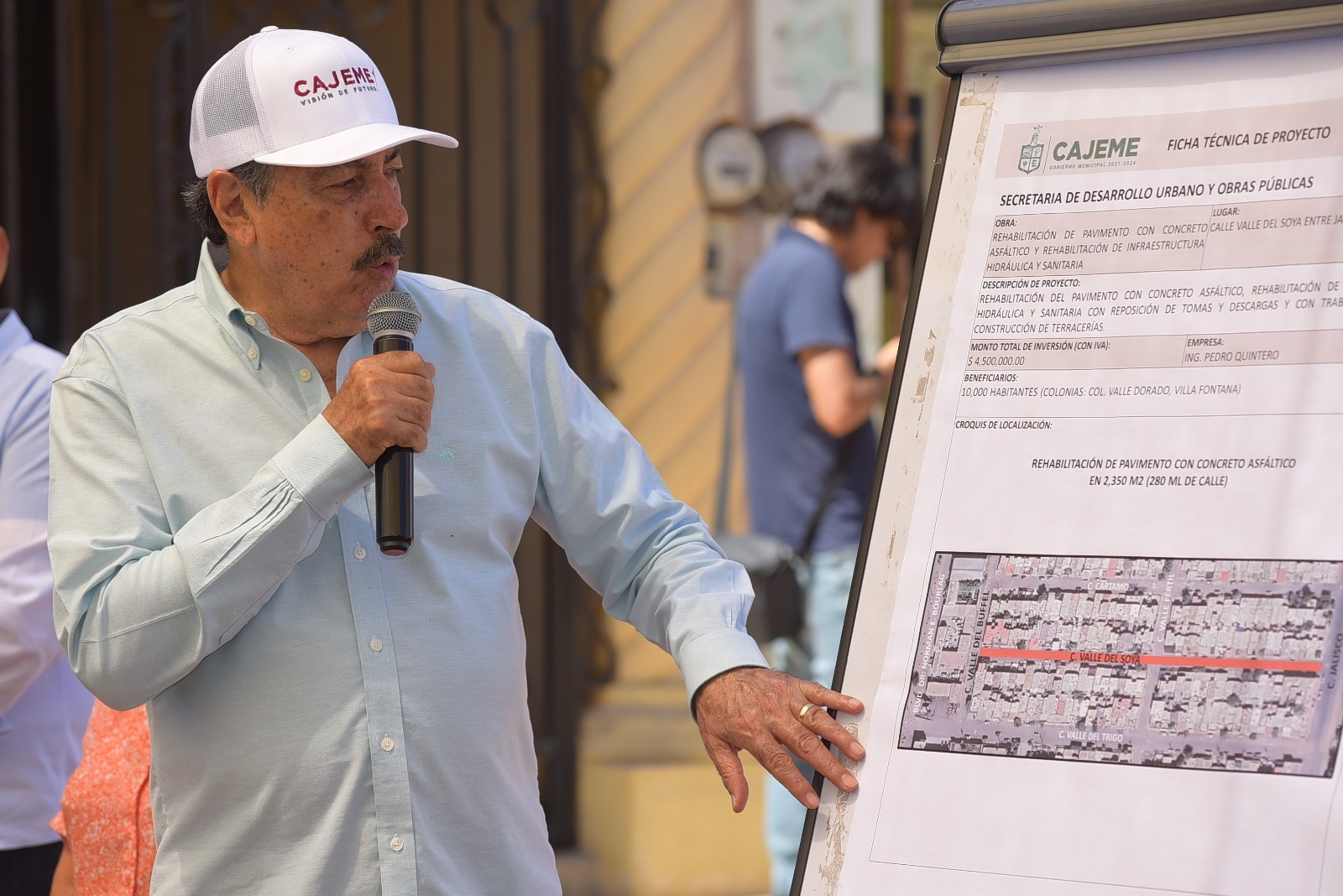 “Se ha rehabilitado la calle Valle del Yori, fueron 8 mil 250 metros cuadrados, se rehabilitó la Valle de Eucalipto, entre calles Buffel y Austria, con 8 mil 500 metros cuadrados, se rehabilitó la Valle Pascola con 12 mil 850 metros cuadrados, Paseo de las Palmas con 9 mil 200 metros cuadrados, la Jalisco, entre Manuel J. Clouthier y Valle del Pascola, con 22 mil metros cuadrados, la Valle del Trigo, en la primera etapa, con 7 mil 360 metros cuadrados, la Valle del Trigo, en proceso, con 4 mil 250 metros cuadrados, la Valle del Trébol, 2 mil 700 metros cuadrados, también en proceso, la Valle Cempoatl con 970 metros cuadrados”, detalló el Presidente Municipal.