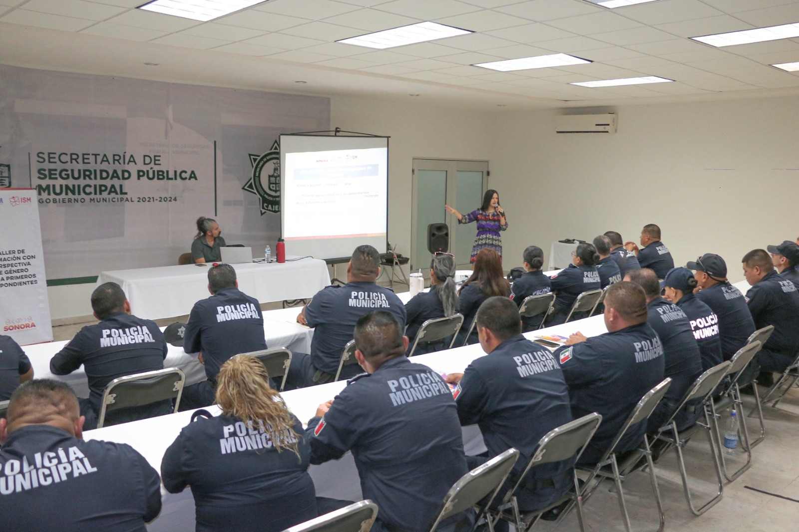 CIUDAD OBREGÓN, SONORA 4 DE JULIO DE 2024.- .- El Instituto Sonorense de las Mujeres en Coordinación con Instituto Cajemense de la Mujer y la Secretaría de Seguridad Pública Municipal, llevaron a cabo la jornada de capacitación con talleres de formación enfocados en la perspectiva de género para primeros respondientes, dirigido a elementos de la SSPM responsables de zona, turno y policías municipales en general, así como a elementos de la Agencia Ministerial de Investigación Criminal y otros agentes de primer contacto.