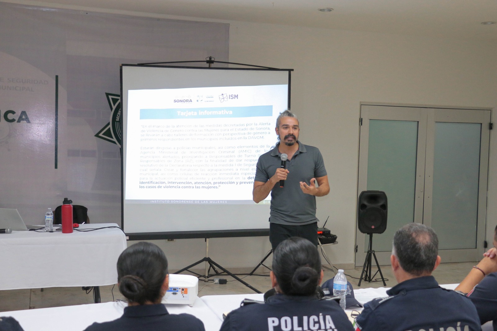 En representación del Comisario de la Secretaría de Seguridad Pública Municipal, Claudio Cruz Hernández, el Director Operativo de la SSPM, Erick Gabriel Campos González, agradeció la visita por parte del Instituto Sonorense de las Mujeres y del Instituto Cajemense de la Mujer, quienes mediante personal capacitado se encargaron de impartir dicho taller a mujeres y hombres agentes de la Policía Municipal y otras corporaciones