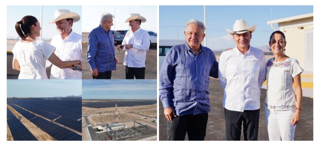 PUERTO PEÑASCO, SONORA 5 DE JULIO DE 2024.- Con una evaluación a la segunda etapa de la Central Fotovoltaica “Rafael Galván” de Puerto Peñasco, el gobernador Alfonso Durazo Montaño, el presidente Andrés Manuel López Obrador y la presidenta electa Claudia Sheinbaum Pardo, dieron inicio a su primera gira de trabajo compartida por Sonora.