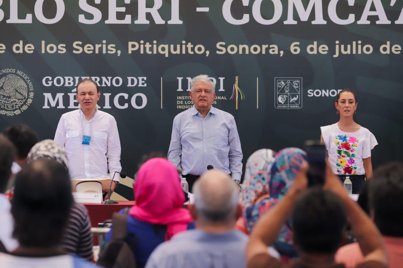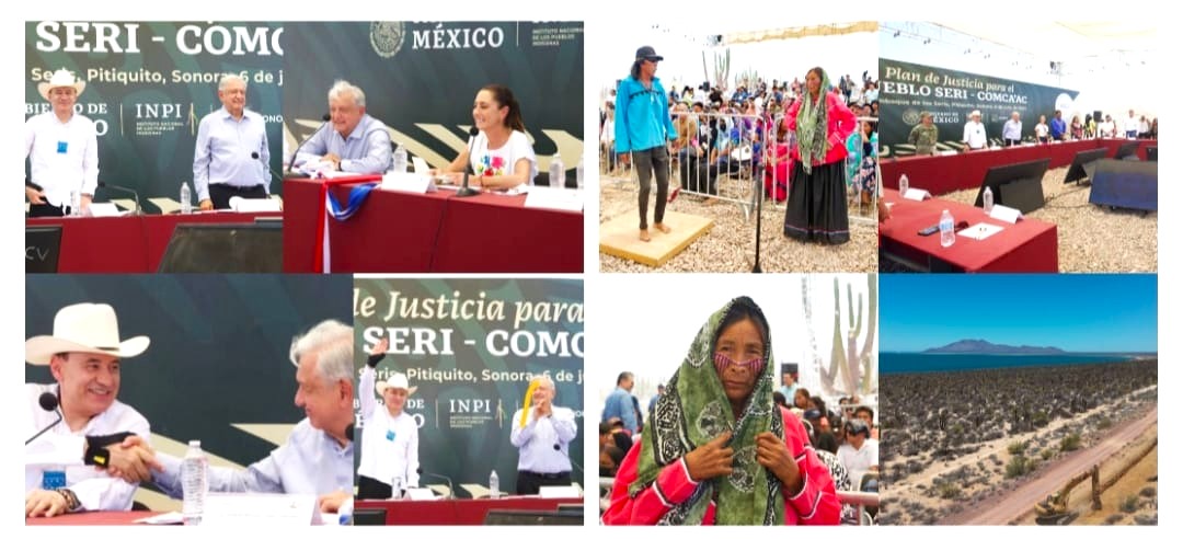 Presiden Gobernador Durazo, presidente López Obrador y presidenta electa Sheinbaum continuidad de restitución de derechos a comunidad Seri