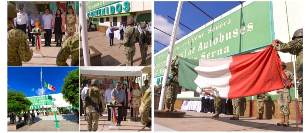 CIUDAD OBREGÓN, SONORA 19 DE AGOSTO DE 2024.- El Gobierno Municipal a través de la Coordinación General de Identidad y Formación Ciudadana, llevó a cabo el abanderamiento e incineración del lábaro patrio situado en la Central de Autobuses de Ciudad Obregón.