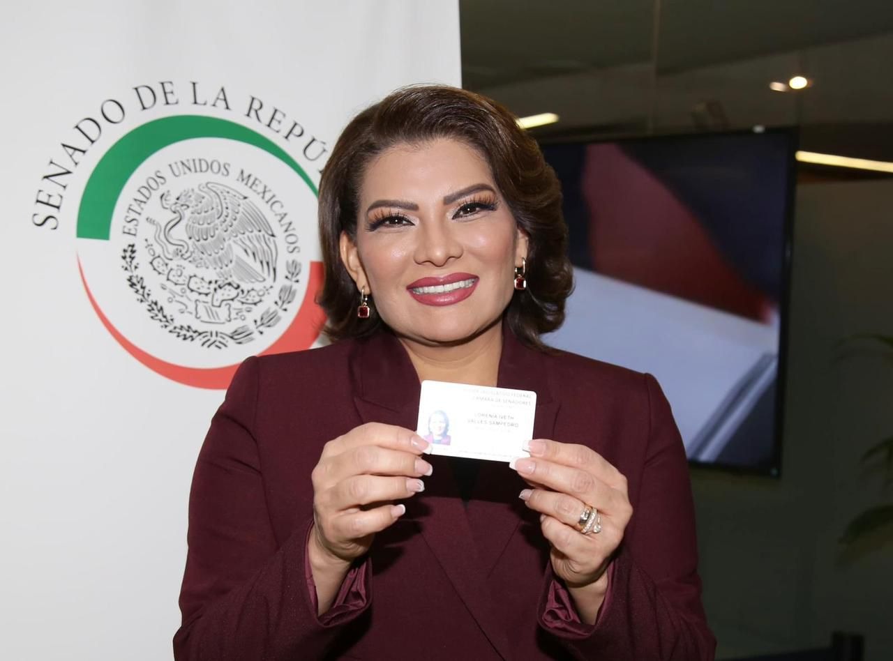 emocionada ante los medios de comunicación la senadora electa Lorenia Valles Sampedro durante su registro en el Senado de la República.