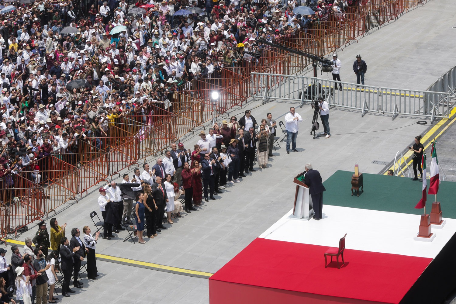“Me voy también tranquilo porque a quien entregaré la banda presidencial por mandato del pueblo es una mujer excepcional, experimentada, honesta y, sobre todo, de buenos sentimientos, de buen corazón; afín a los principios fundacionales de nuestro movimiento de transformación y auténtica defensora de la igualdad, la libertad, la justicia, la democracia y la soberanía: Claudia Sheinbaum Pardo”, añadió luego de exhortar en varias ocasiones a los asistentes a corear el nombre de la presidenta electa.