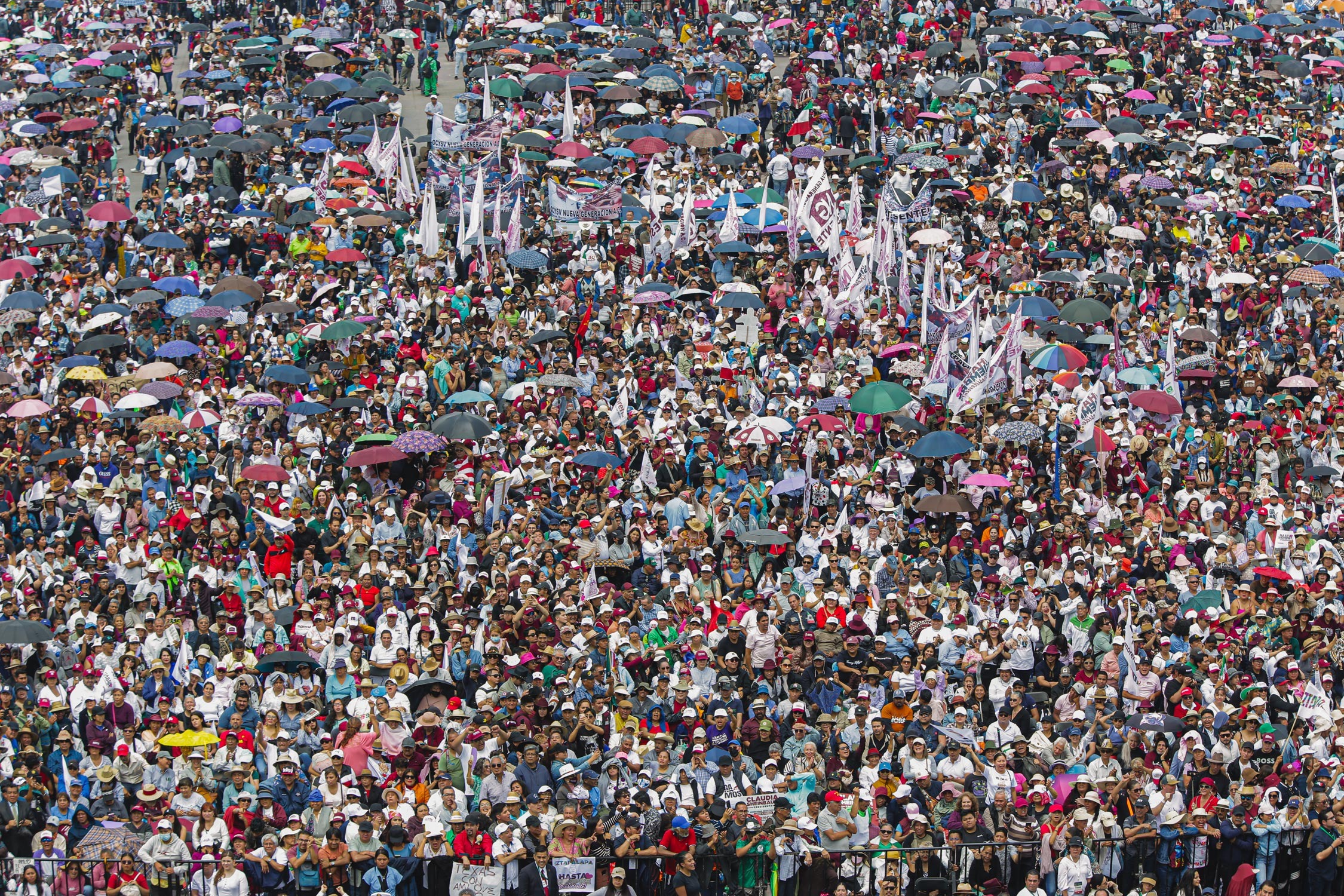 En el Zócalo de la Ciudad de México detalló “lo que hemos hecho entre todas y todos, y desde abajo. Mientras en los sexenios de Calderón y Peña Nieto cada mes se empobrecían 100 mil personas, en nuestro gobierno, por el contrario, cada mes salen de la pobreza 100 mil mexicanos. De 2018 a 2022, según el Inegi, salieron de la pobreza cinco millones 100 mil personas, es decir, el 5.6 por ciento, algo que no sucedía en más de 30 años”.