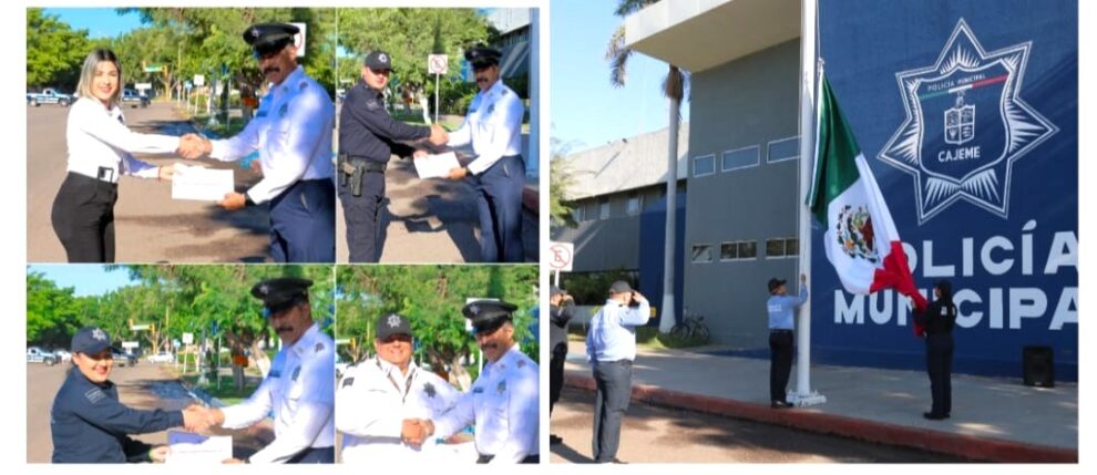 Como parte del lunes cívico se entonaron las notas del himno nacional mexicano y se efectúo un izamiento de bandera, informando además sobre las efemérides de la semana.Posteriormente, el Jefe de la Policía Preventiva y Tránsito Municipal de Cajeme Capitán Claudio Cruz, llevó a cabo la entrega de reconocimientos por ser empleados del mes a las y los trabajadores que destacaron por su desempeño en el servicio, asimismo, se entregaron constancias a agentes operativos al cumplir con el Certificado Único Policial.