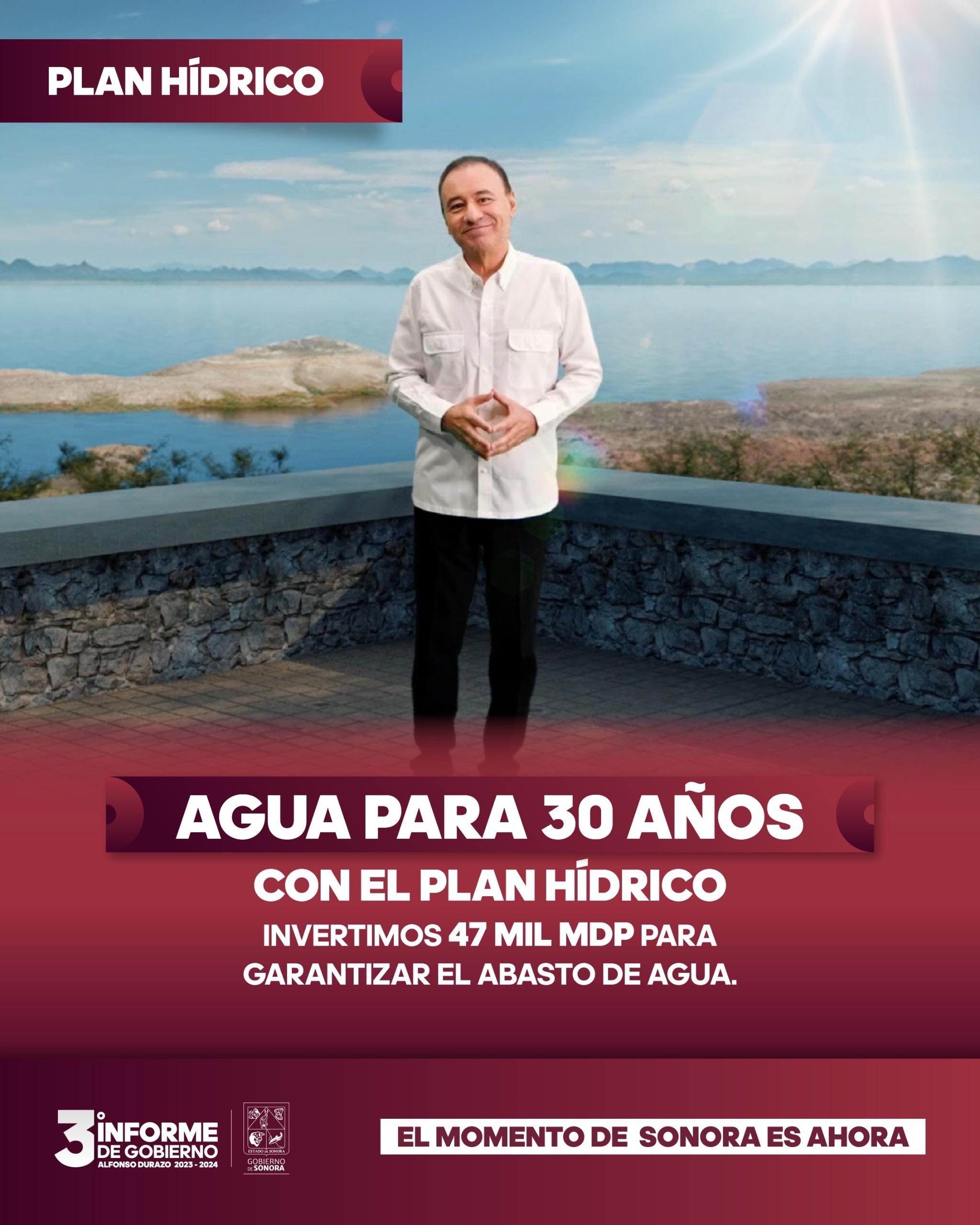 El Plan Hídrico Sonora 2023-2053 contempla una inversión total de 47 mil 320.68 millones de pesos y abarca proyectos de infraestructura hidráulica, abasto de agua potable, saneamiento y drenaje, de fortalecimiento de los organismos operadores de agua y de desalinización.