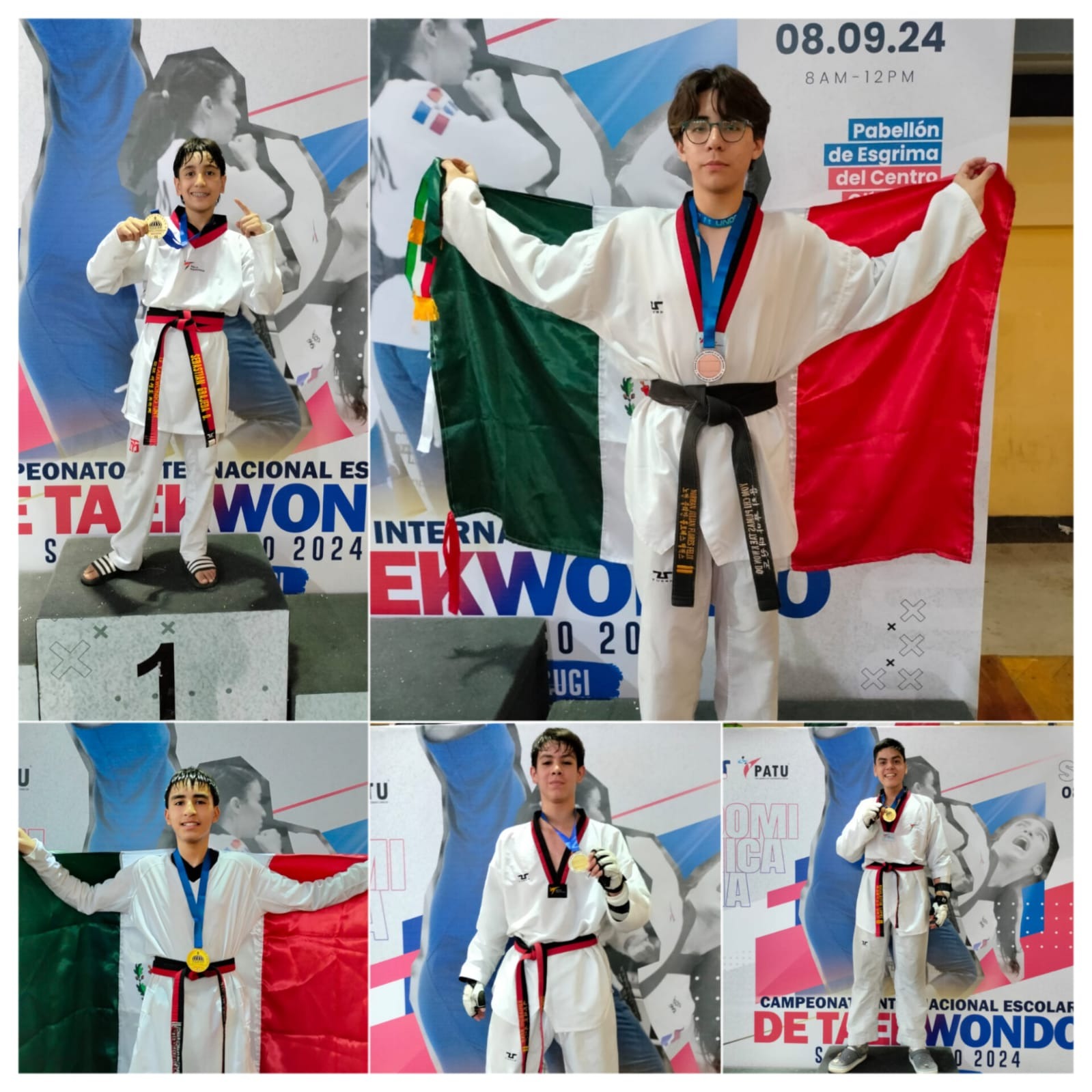 Hermosillo, Sonora; 8 de septiembre de 2024.- Con un total de cinco medallas de oro, una de plata y una de bronce, estudiantes deportistas sonorenses destacaron en el Campeonato Internacional de Taekwondo Escolar, que se llevó a cabo en Santo Domingo, República Dominicana, anunció la Secretaría de Educación y Cultura (SEC).