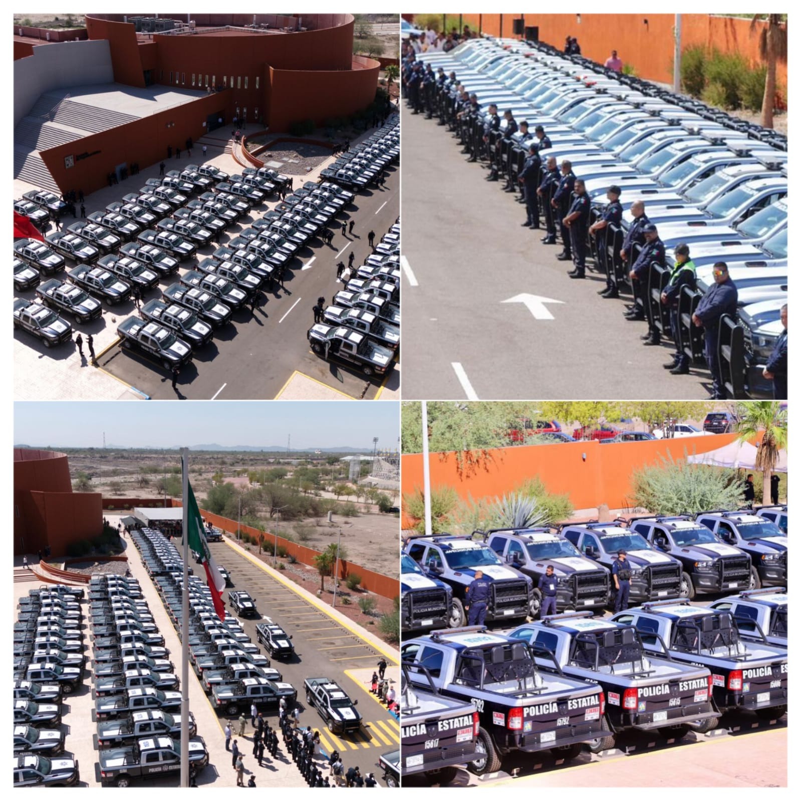 En 2021 el parque vehicular de la PESP era de 239 unidades, cifra que incrementó en 2024 a 473, y con la entrega de 81 patrullas que este día llevó a cabo el gobernador Durazo Montaño, se alcanzó una cifra histórica de 554 vehículos para las fuerzas del estado.