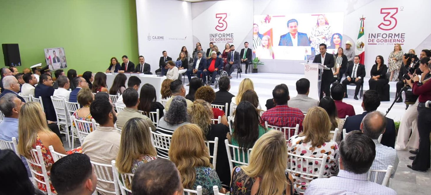 Durante la presentación de un extracto del Tercer Informe de Gobierno, el Alcalde agregó que además de una histórica inversión para la reconstrucción de calles y alumbrado público, de las mejoras en Seguridad Pública, el fortalecimiento del Oomapasc, Central de Autobuses, en Deportes y Cultura, el trabajo de DIF y otras dependencias, así como de la atracción de inversión con el establecimiento de SkyBridge, la empresa coreana Kyungshin y de otros consorcios asiáticos por llegar, también, por tercera vez consecutiva, Cajeme ha sido el municipio con mejorcalificación en el manejo de la cuenta pública por parte del ISAF, y no sólo eso, sino que este año se obtuvo la mejor calificación en la historia del municipio; además de que la Auditoria Superior de la Federación le dio al municipio un cien por ciento en cumplimiento y cero observaciones.