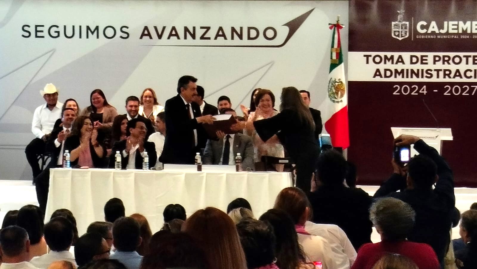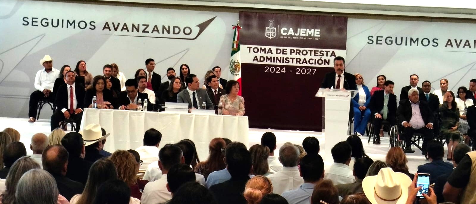 Durante la Sesión Solemne de Cabildo para la instalación y toma de protesta a las y los integrantes de la administración 2024-2027, el Alcalde manifestó que en este evento se conjugan dos acontecimientos, “la terminación de un ciclo en la administración que hoy concluye y el inicio de otro, ambos ciclos no indican el final e inicio de tiempos discontinuos, sino dos etapas de un mismo proyecto, el proyecto que el pueblo de Cajeme ha refrendado para su continuación”, enfatizó Lamarque Cano, pues no se puede defraudar la confianza de la gente.