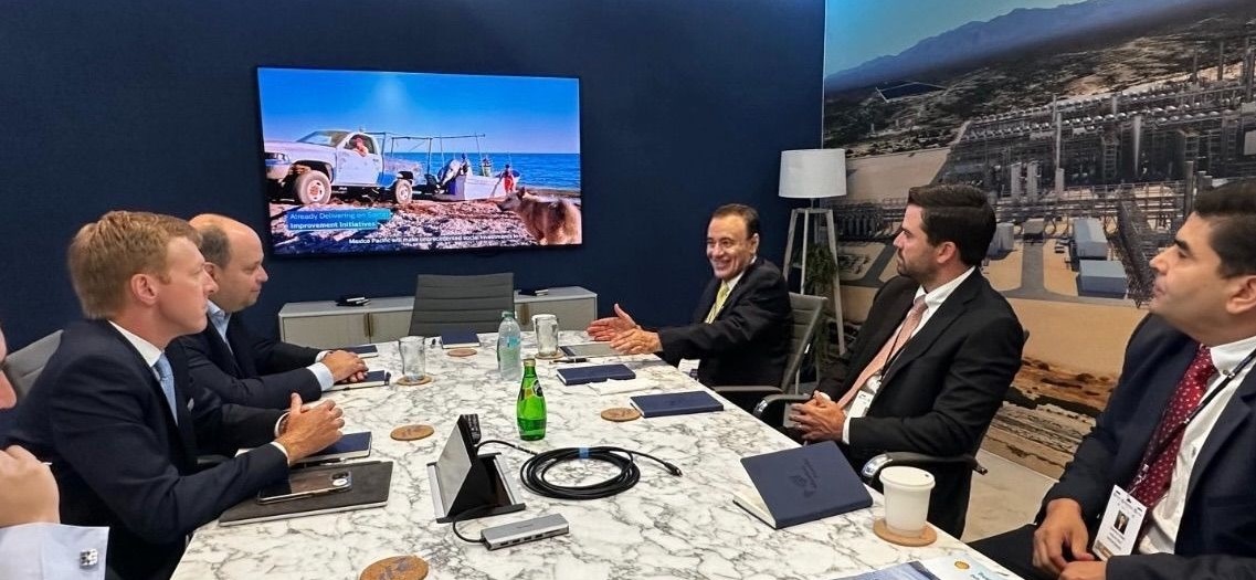 Para dar seguimiento al trabajo de promoción de la iniciativa Plan Sonora, el mandatario estatal se reunió con Sarah Bairstow, CEO de Mexico Pacific, para exponer el proyecto ante miembros de empresas de 120 países, y que están asociados a la planta de licuefacción en Puerto Libertad, ya sea como proveedores, ingenieros o diseñadores.