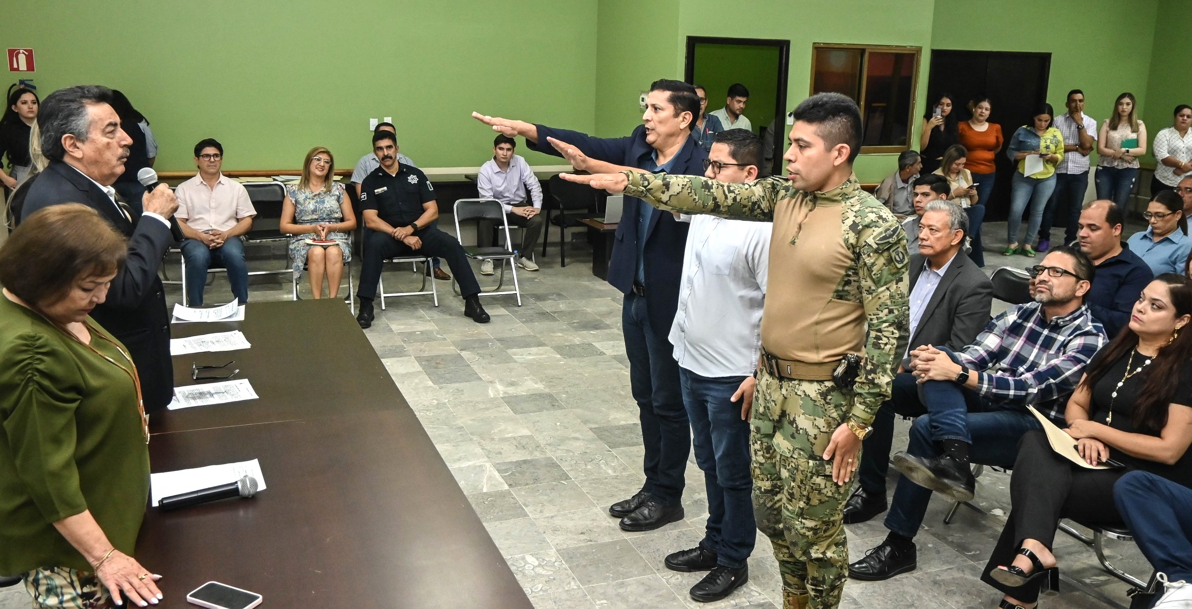 De seguridad Pública, Erick Gabriel Campos, Director Operativo; Gaudencio Escalón Sánchez, Director Administrativo y Octavio César Quintero Valenzuela como Director de Capacitación de la Academia de Policía.